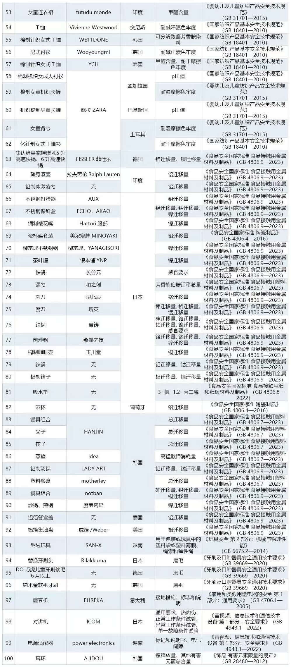 【#ZARA拉夫劳伦被点名通报#】日前,海关总署对2025年检验发现的100个进口消费品质量安全不合格典型案例,进行通报。此次通报的典型案例涉及服装甲醛含量超标、pH值不合格,餐具、厨具等食品接触产品铅、铝、铬、钴、锰、镍等元素迁移量超标等情况。海关对检验发现的进口不合格消费品,均已依据《中华人民共和国进出口商品检验法》及其实施条例等法律法规,责令当事人销毁或实施退运处理。海关将持续筑牢质量安全防线,支持扩大优质消费品进口,切实增强人民群众的获得感、幸福感和安全感。详情:网页链接