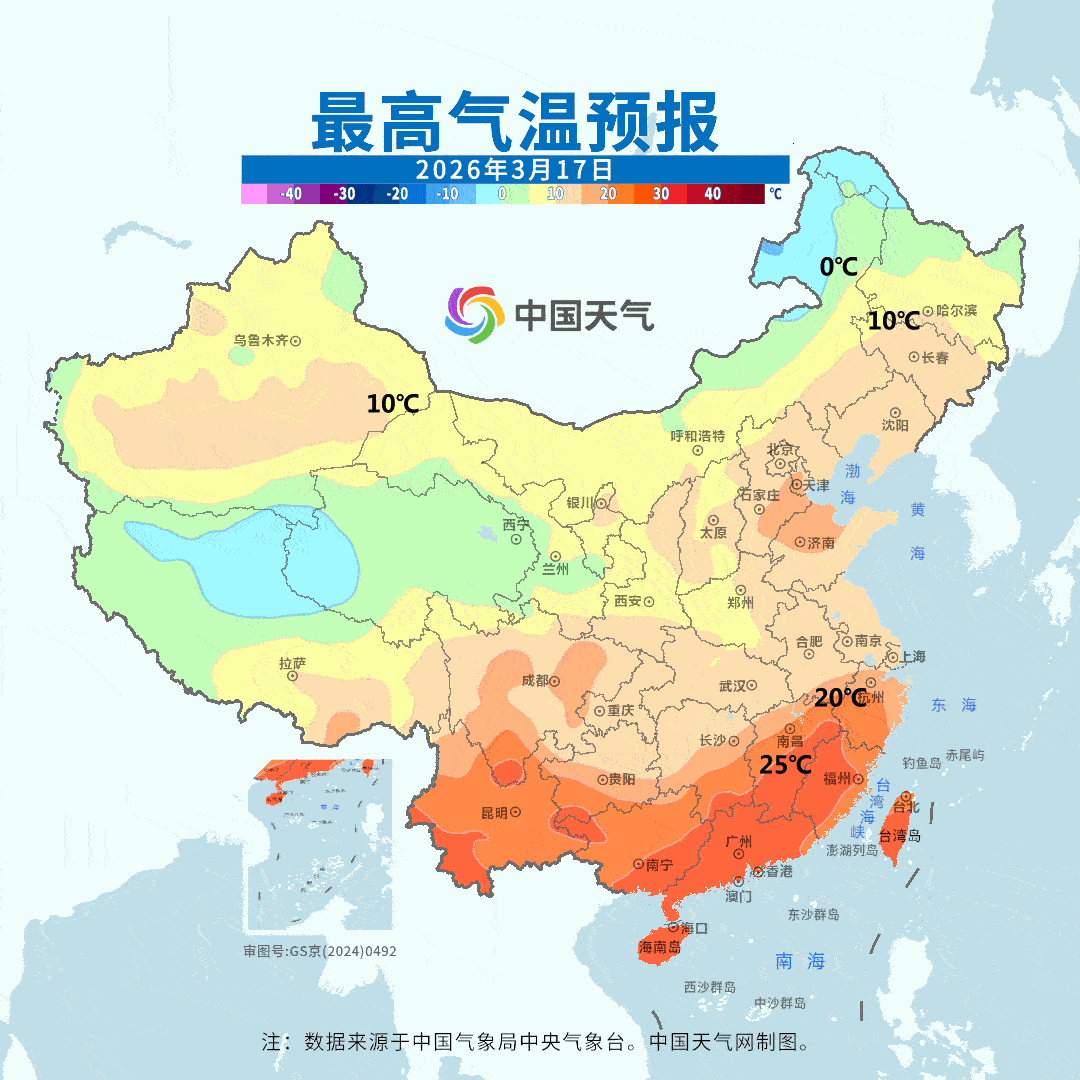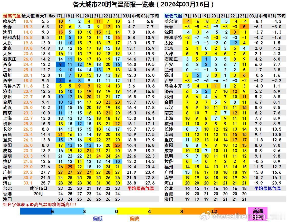 另外因为北方未来晴天多,光照加热可能导致午后的气温比南方阴雨区的气温高,形成南北倒挂。比如明天沈阳最高15℃,比合肥10℃、武汉11℃、南京11℃、上海13℃、长沙14℃,都要高一些。