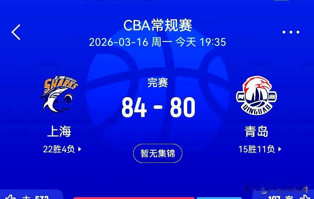 上海男篮俨然成了CBA霸主,本轮主场逆转青岛,牢据积分榜第一 CBA篮球联赛常规赛,在经过休赛期后,重燃战火。上海久事队在连续两场比赛中都取得胜利,今天主场迎战青岛男子篮球队,在落后了大半场的情况下,最后一节强势逆转了比赛,以84一80击退了青岛队。青岛队领先了大半场却在最后一节丢失了进攻的武器被上海队逆转,实在令人惋惜。上海队以22胜4负的战绩,艳压群芳,继续霸占积分榜第一的宝座,俨然成了CBA篮球的霸主。那么,篮球迷友们,你们觉得上海久事男篮能夺得CBA篮球总冠军吗?上海篮球外援