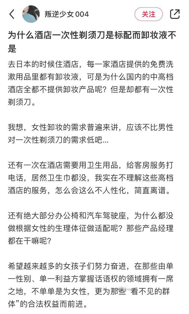 为什么酒店一次性剃须刀是标配而卸妆液不是