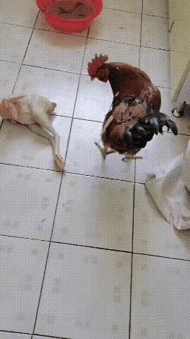 公鸡望着地上被主人脱得精光的情敌郁闷了,原来,它俩是同一鸡笼的鸡友,错怪了兄弟,在为鸡类繁衍的过程中错把鸡友当成了敌人,常常打得头破血流,抓得鸡毛纷飞,现在,情敌不在了,公鸡一点都高兴不起来,繁衍后代的重任落在了它一鸡的身上,哪天体力不行了,也会和同伴的命运一样,想到这里,不由得仰天长叹,挤出来几滴浑浊的鸡泪。