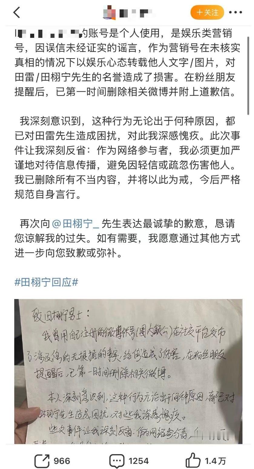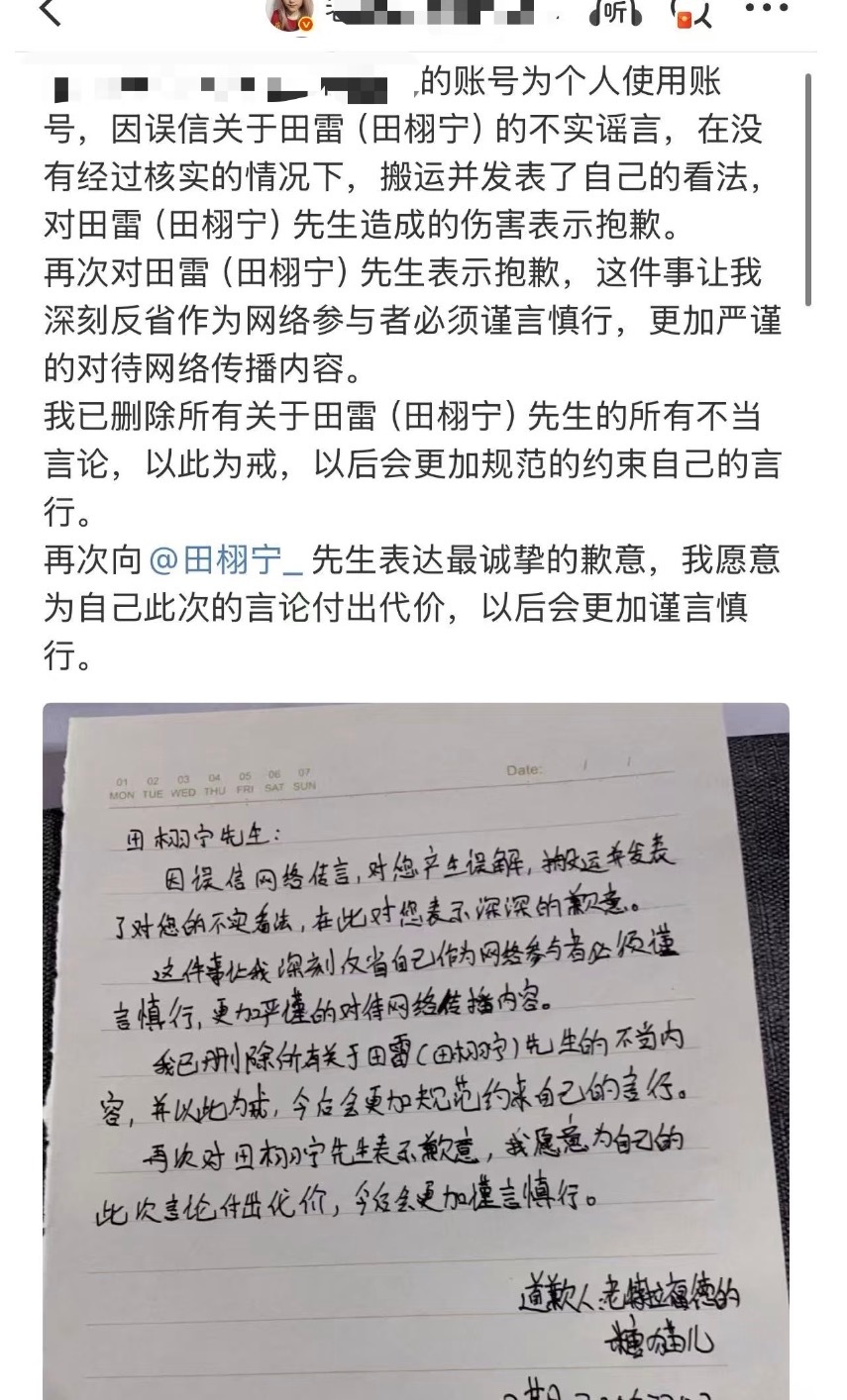 田栩宁经纪人注销账号好多人都不知道田栩宁之前告的这些账号道歉了,我不明白为啥这些
