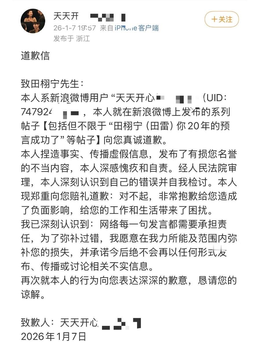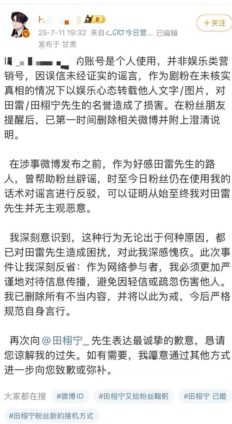 田栩宁经纪人注销账号好多人都不知道田栩宁之前告的这些账号道歉了,我不明白为啥这些扰乱网络秩序的风言风语会隔三差五的单开一页,给人舆论定罪,而胜诉却上不了热搜,就是澄清了也没几个人关心。