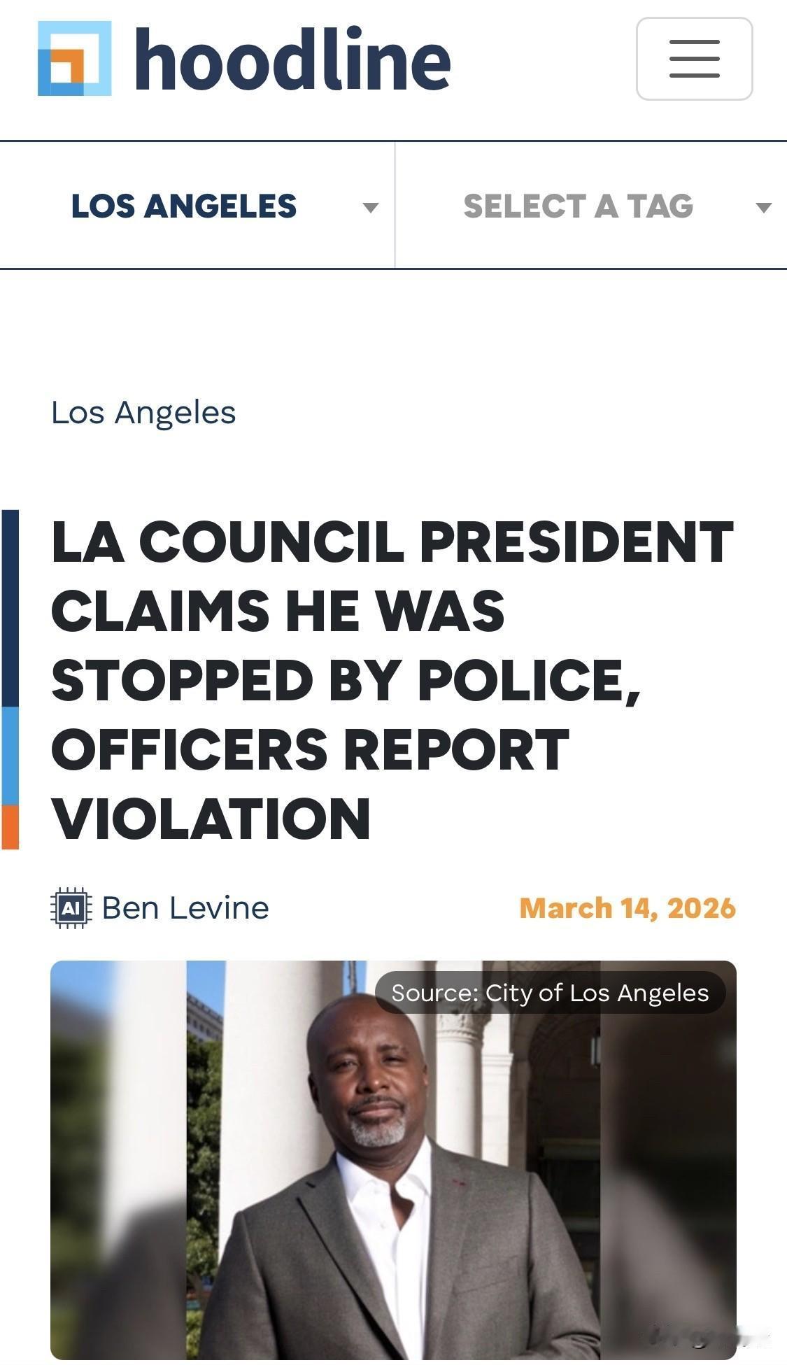 洛杉矶市议会主席马奎斯·哈里斯-道森(Marqueece Harris-Dawson)在指控警方对其进行带有种族偏见的交通拦截后,于 2026 年 3 月上旬首次在市议会公开露面并就此事发声。 他在议会发言中情绪激动,甚至一度哽咽,称此次经历对他造成了“创伤”。以下是该事件的核心细节: 哈里斯-道森在议会讲台上表示,他在开会途中驾驶挂有政府车牌的公务车时被警察拦下。他声称警员在无正当理由的情况下对其进行盘问,询问他如何拥有这辆车以及他在市政府的工作。他认为这是典型的“种族定型”(racial profiling)行为。 洛杉矶警方随后发布声明反驳了这一指控。警方指出,拦截行为并非由洛杉矶警察局(LAPD)实施,而是由洛杉矶学校警察局(LASPD)执行。 警方记录显示,哈里斯-道森被拦截是因为他在学校区域发生了交通违规行为,具体包括危险驾驶以及在学校路段违规掉头。 有消息透露,在被拦截期间,哈里斯-道森曾联系洛杉矶联合学区(LAUSD)的高层,试图规避交通罚单。 此次露面发生时,洛杉矶市议会正围绕“是否应由持械警员处理常规交通执法”展开激烈辩论,哈里斯-道森的言论也因此备受舆论关注。
