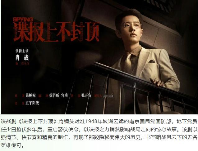 【谍报上不封顶亮相香港国际影视展】3月17日,由香港贸发局主办的香港国际影视展(FILMART)在香港会议展览中心盛大开幕,正午阳光影视有限公司携多部作品亮相,其中重点介绍了主演的谍战剧《谍报上不封顶》,剧集将镜头对准1948年波谲云诡的南京国民党国防部,地下党员任少白蛰伏多年后,重启潜伏使命,以谍报之力悄然影响战局走向的惊心故事。该剧以强情节、快节奏和精良的制作,再现了那段隐秘而伟大的历史,书写暗战风云下的无名英雄传奇。