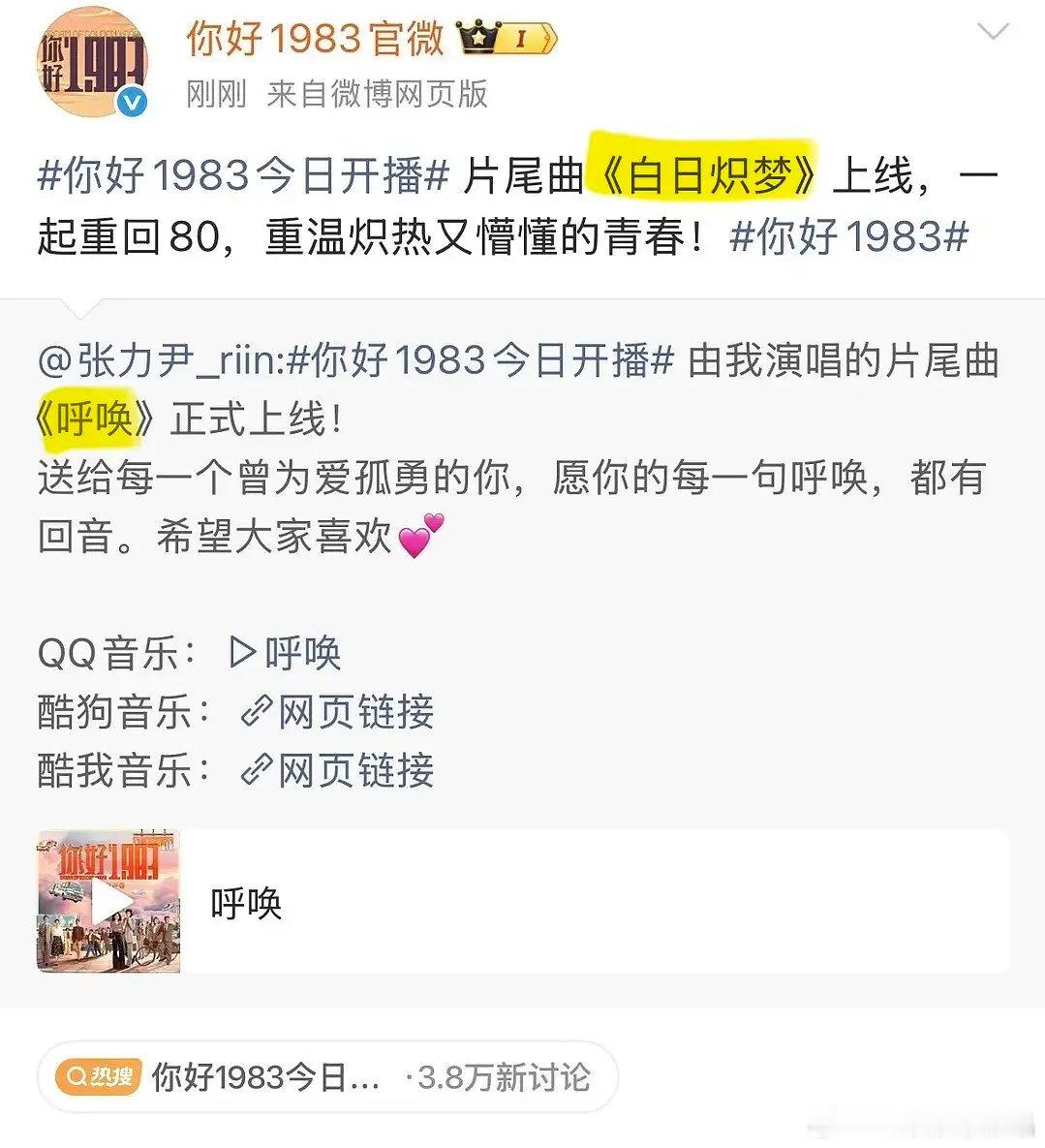 周也的《你好1983》今晚要播了,宣传很低调啊
