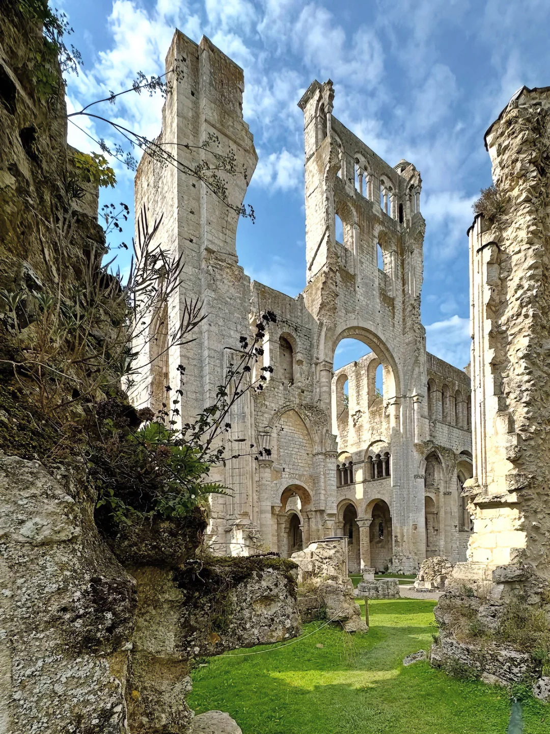 这里曾被雨果誉为 “法兰西最美的废墟”,它不是完全的坍塌,而是保留了近50米高的白色双塔,建于7世纪,也正是这份“残缺”,让它拥有了一种悲壮而宁静的史诗感..