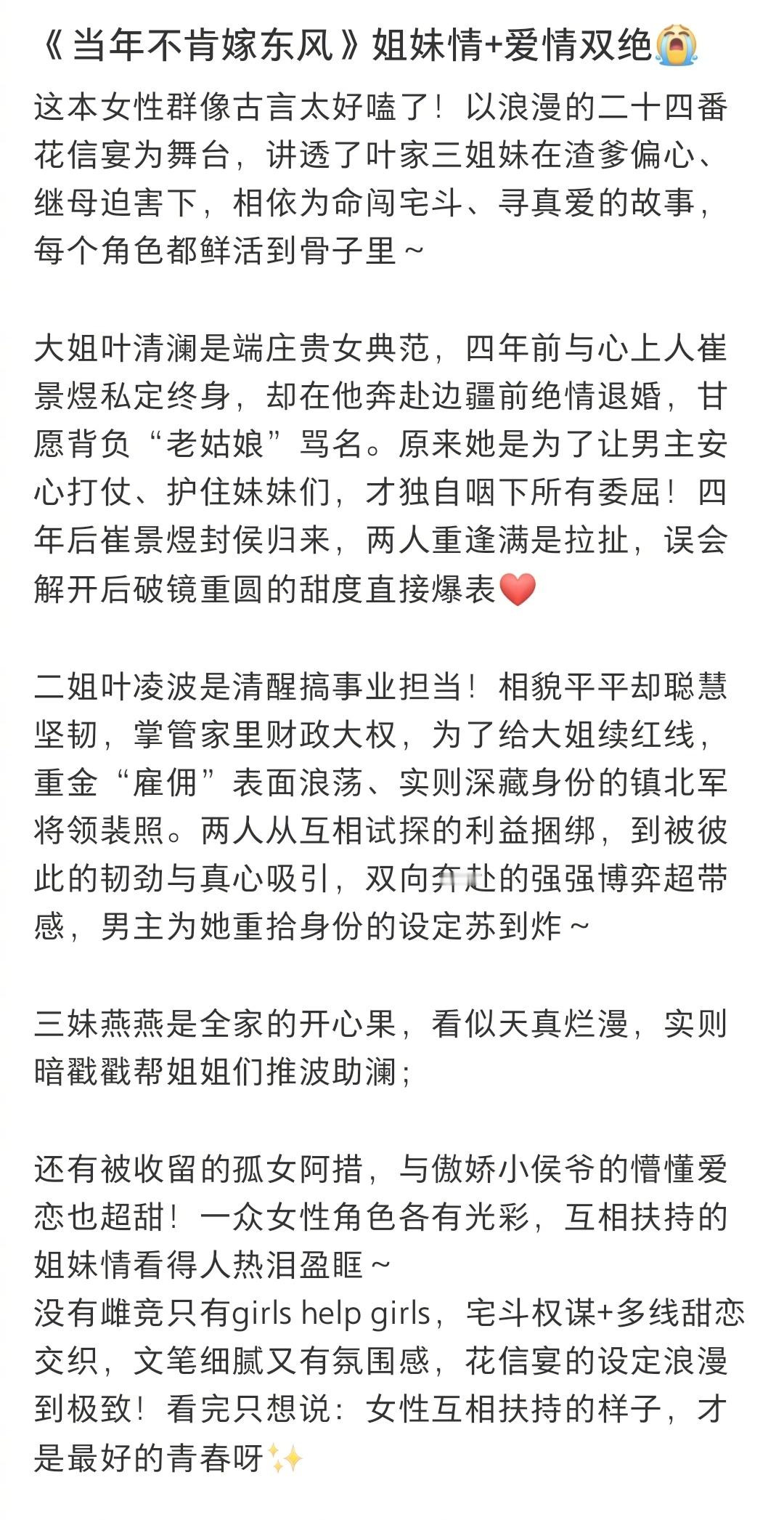 正午阳光继《知否》后再拍宅斗,电视剧《当年不肯嫁东风》开发中✅原作者明月倾亲自编
