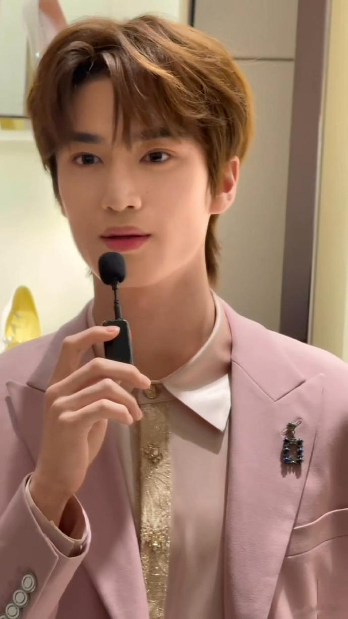 张康乐线下粉色西装张康乐今日线下活动,卷毛粉西装造型真的太好看了张康乐卷毛粉西装