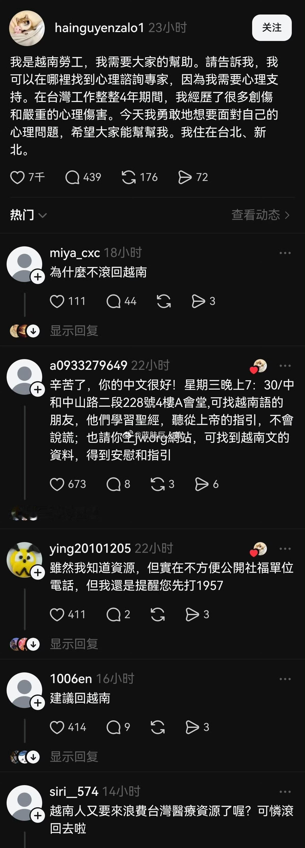 越南劳工向台湾省网友求助,台湾省网友回复如下!