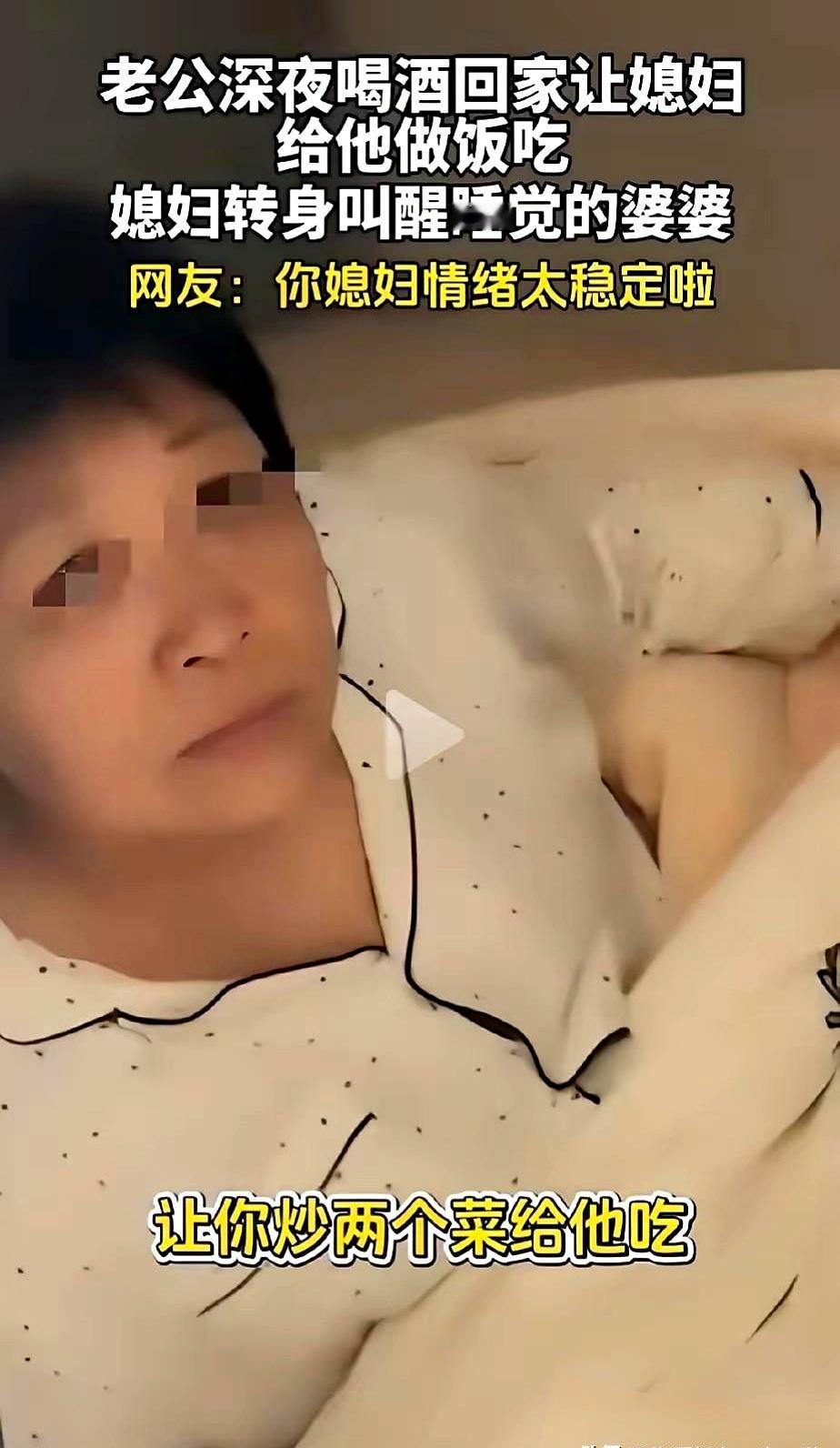 半夜喝完酒回家,还想让媳妇给你炒菜? 这哥们儿是真把老婆的好脾气当福气了。 上海一位男子,凌晨一点半喝得晕乎乎回来,硬是把睡着的媳妇摇醒,说要吃俩菜。 媳妇倒是没吵也没闹,转头就去了婆婆房间:“妈,你儿子饿了,让你炒俩菜呢。” 婆婆一听,从被窝里爬起来,也没发火,就拿了手机慢悠悠拨了个电话。 儿子看着自己手机响了,整个人都懵了。 婆婆当着面接通,语气特别温柔:“儿子,在外面喝酒呢?饿啦?想吃啥菜呀?”这下他全明白了,脸唰一下就红了,赶紧摆手说不用了。 说实话,平时总觉得媳妇好说话,啥要求都能满足,其实这就是蹬鼻子上脸。 媳妇这回一点没吵,让婆婆出面点破他的自私,真是聪明。 半夜吵醒全家就为口吃的,这做法本来就不讲理。 婆婆这招,既没伤婆媳关系,又狠狠治了儿子一把。 他站在那儿尴尬得不行,啥也不敢说了,乖乖回屋睡觉。 这回算是明白了,家人的包容不是让你随便使唤的。 你们家里要是遇上这种事,一般都怎么处理?