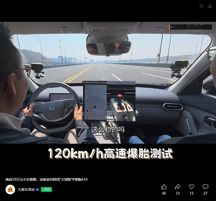 刷新安全天花板!零跑A10用四场极限测试,为10万级SUV立下新标杆 要说最近车圈什么场面最硬核?那必须是车评大佬颜宇鹏拉着零跑创始人朱江明,一起坐进零跑A10里亲身体验极限安全测试。敢让老板和最懂车的媒体人同时参与这样的测试,这背后得是多大的底气? 其实现在聊汽车安全,早就不只是拼厚实的钢板和安全气囊了。主动规避风险的能力,才是咱们老百姓真正关心的硬指标。零跑A10在专业测试场完成的四重极限试炼,就用实打实的表现,给出了这份底气的答案。 第一项,120km/h的高速紧急制动。模拟高速路上前方突然出现侧翻事故车的突发场景,人类反应根本来不及,零跑A10却凭借敏锐的感知,精准识别障碍,稳稳刹停,直接规避了追尾的风险。 第二项,100km/h紧急转向避险。这关考验的是 “刹不住,就躲开”。面对前方障碍,系统判断制动距离不够时,会果断介入转向,以稳定精准的动作,完美绕开前方障碍,这才是最务实的应急方案。 第三项,暴雨环境极限挑战。人眼都快被雨幕糊住了,A10的激光雷达系统却能穿透干扰,精准识别前方无灯光的静止车辆,及时预警并制动,机器的感知,成了雨天最靠谱的屏障。 最后一项,是终极考验——120km/h高速爆胎。爆胎瞬间,车辆控制系统立刻介入,通过对车轮的精细化控制,强行抑制跑偏,牢牢稳住车身,给驾驶员留出了足够的反应时间和安全余量。 从预警、刹停,到主动避险,再到失控补救,零跑A10用这四场硬核试炼,展现了一个全天候、全维度的安全防护罩。更关键的是,这一切都将出现在一台10万级的家用车上。这让我们更有理由期待,在3月26日的发布会上,它还会带来什么样的惊喜。