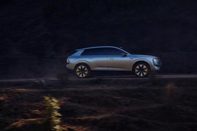 原创这件事,5049mm车长、3060mm轴距,quattro肩线拉出来的车身比例,线条克制,没有为了显得科技感堆叠设计元素,整体是那种"少一点说不清、多一点就太满"的状态。在当前新能源中大型SUV普遍趋向同质化的市场里,能做到这一点是有成本的。