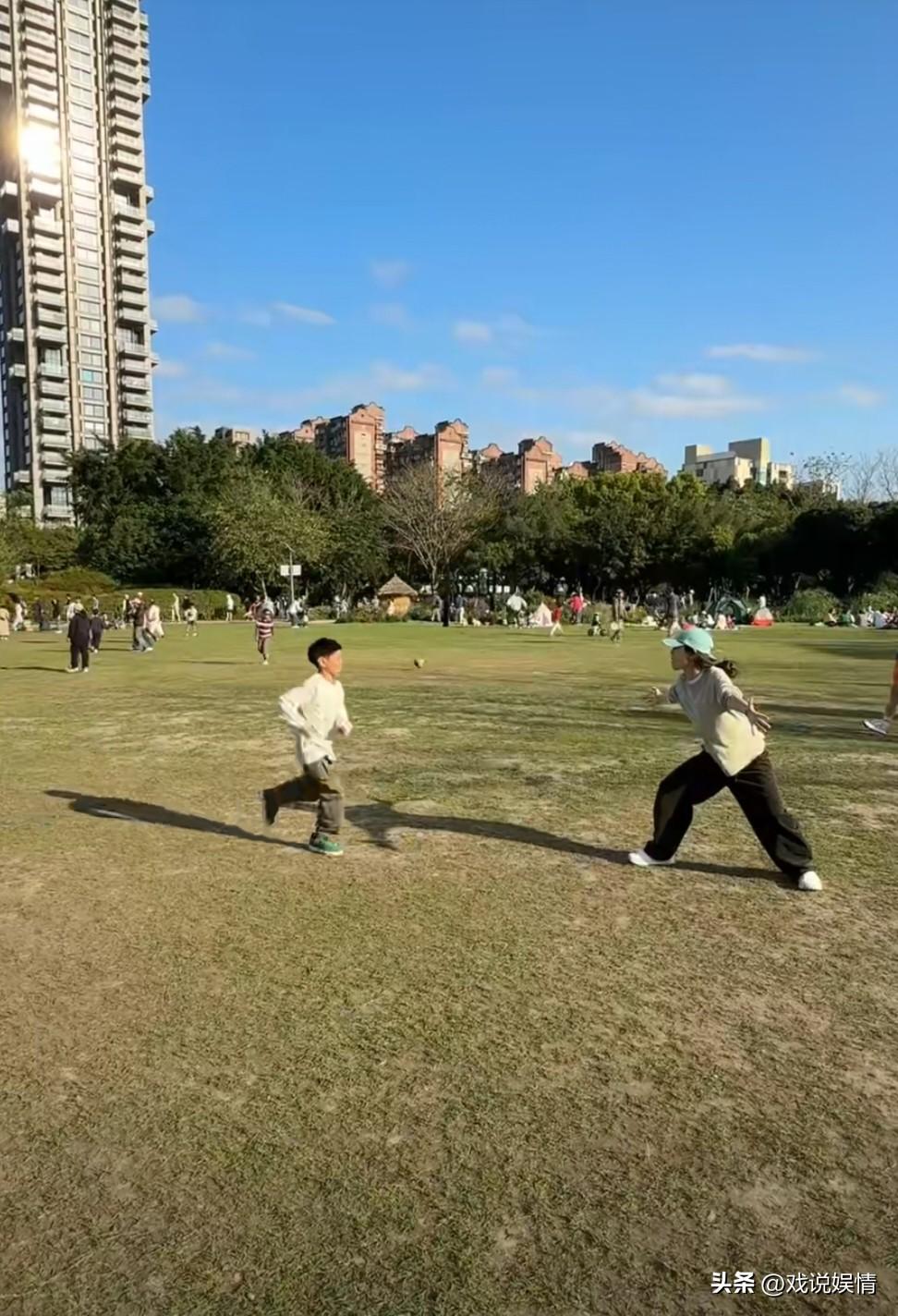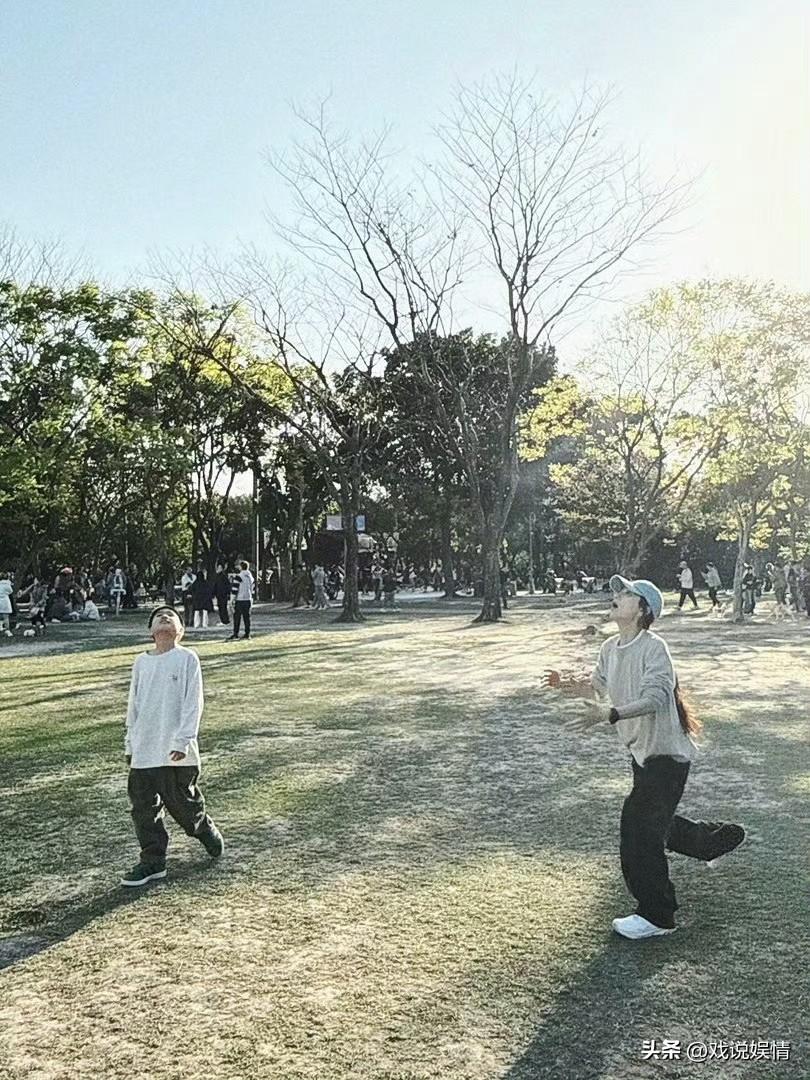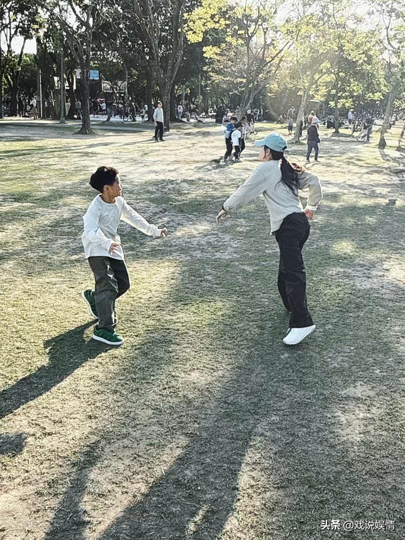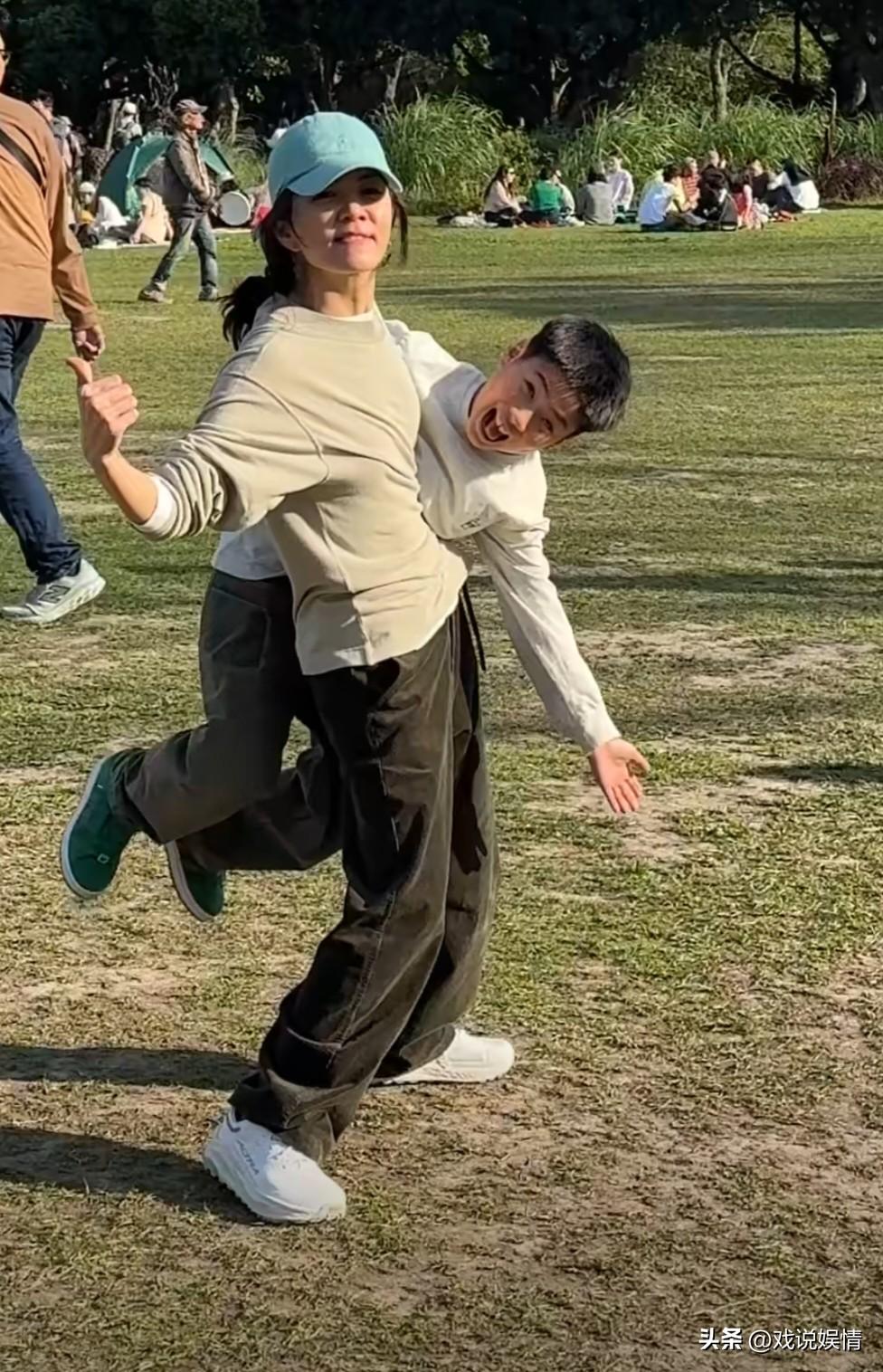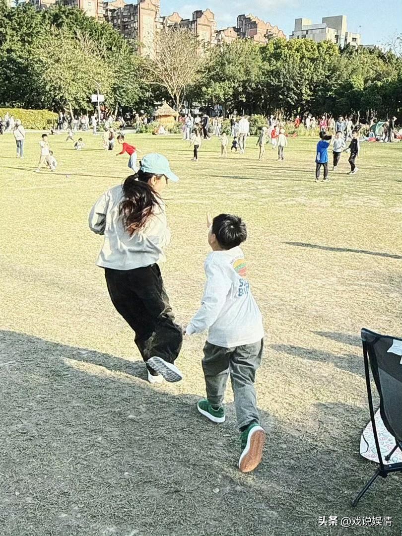 陈嘉桦儿子劲宝都长这么大了! 3月17日,陈嘉桦(Ella)分享了一组照片,记录周末一家三口在公园玩耍的日常。一家三口穿着同款运动装,陈嘉桦还戴着一顶蓝色鸭舌帽,手里牵着狗狗。在公园内的草地上,劲宝快步奔向妈妈,陈嘉桦则张开双臂等待儿子,抱起儿子后,陈嘉桦竟还可以单手抱着儿子合影,臂力好厉害! 劲宝都长这么大了,母子俩感情还这么好,一起在草地上玩得不亦乐乎!一起走路时也要互相搂着肩膀和腰!一家三口真得好温馨!