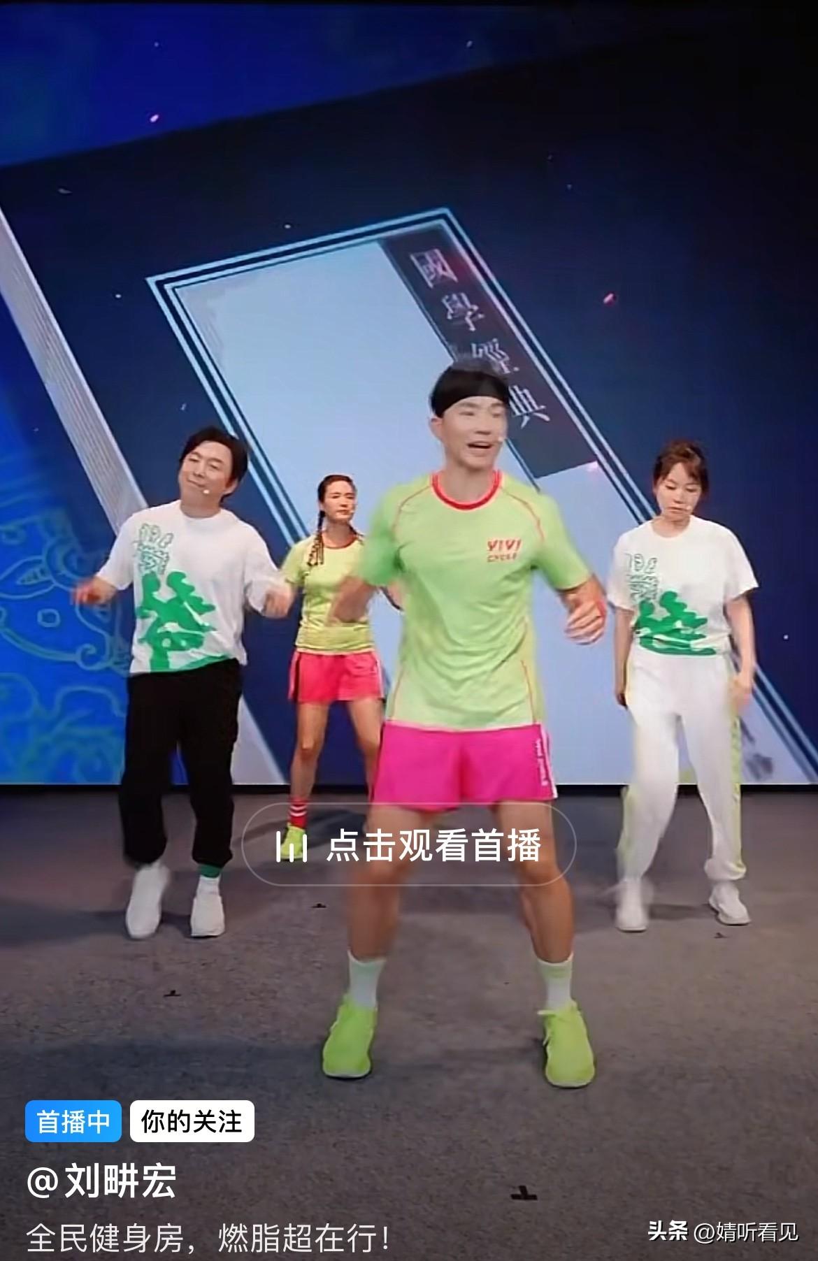 发现了吗? 刘耕宏的直播间可太欢乐啦! 刘教练十分卖力地带着他老婆和两位娱乐明星一同跳操。 黄渤的一举一动全是笑料,闫妮更是宛如微醺后本色出演。 刘教练为了带大家跳操可真是想尽了办法,运动加娱乐,欢声笑语,快乐加倍呀!