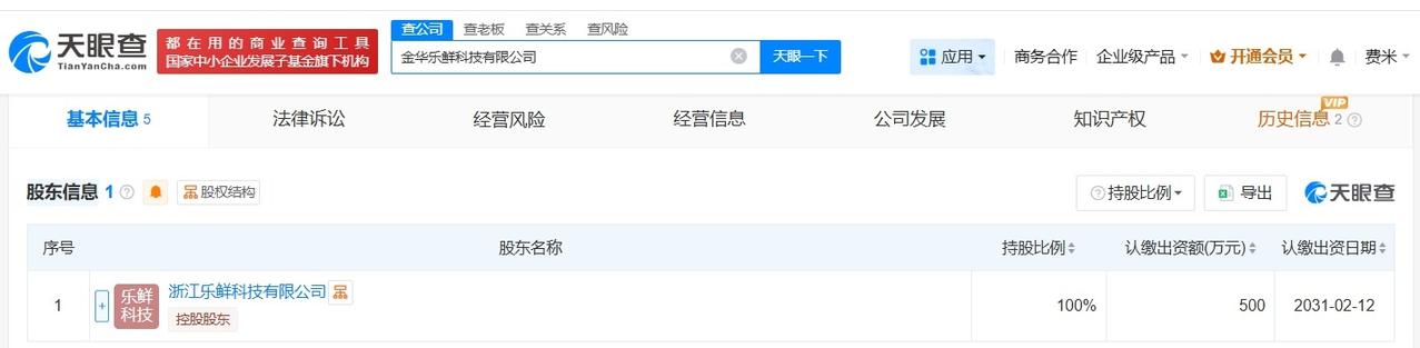 美团在金华成立乐鲜科技公司 注册资本500万 天眼查工商信息显示,近日,金华乐鲜科技有限公司成立,法定代表人为高雨龙,注册资本500万人民币,经营范围含票务代理服务、汽车装饰用品销售、消防器材销售等。股东信息显示,该公司由美团旗下浙江乐鲜科技有限公司全资持股。 天眼查信息: