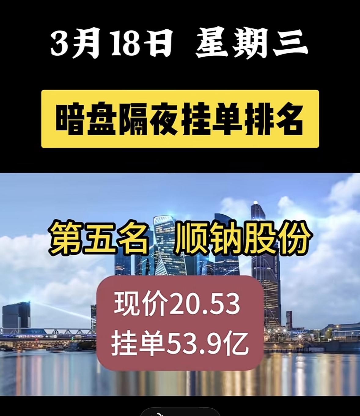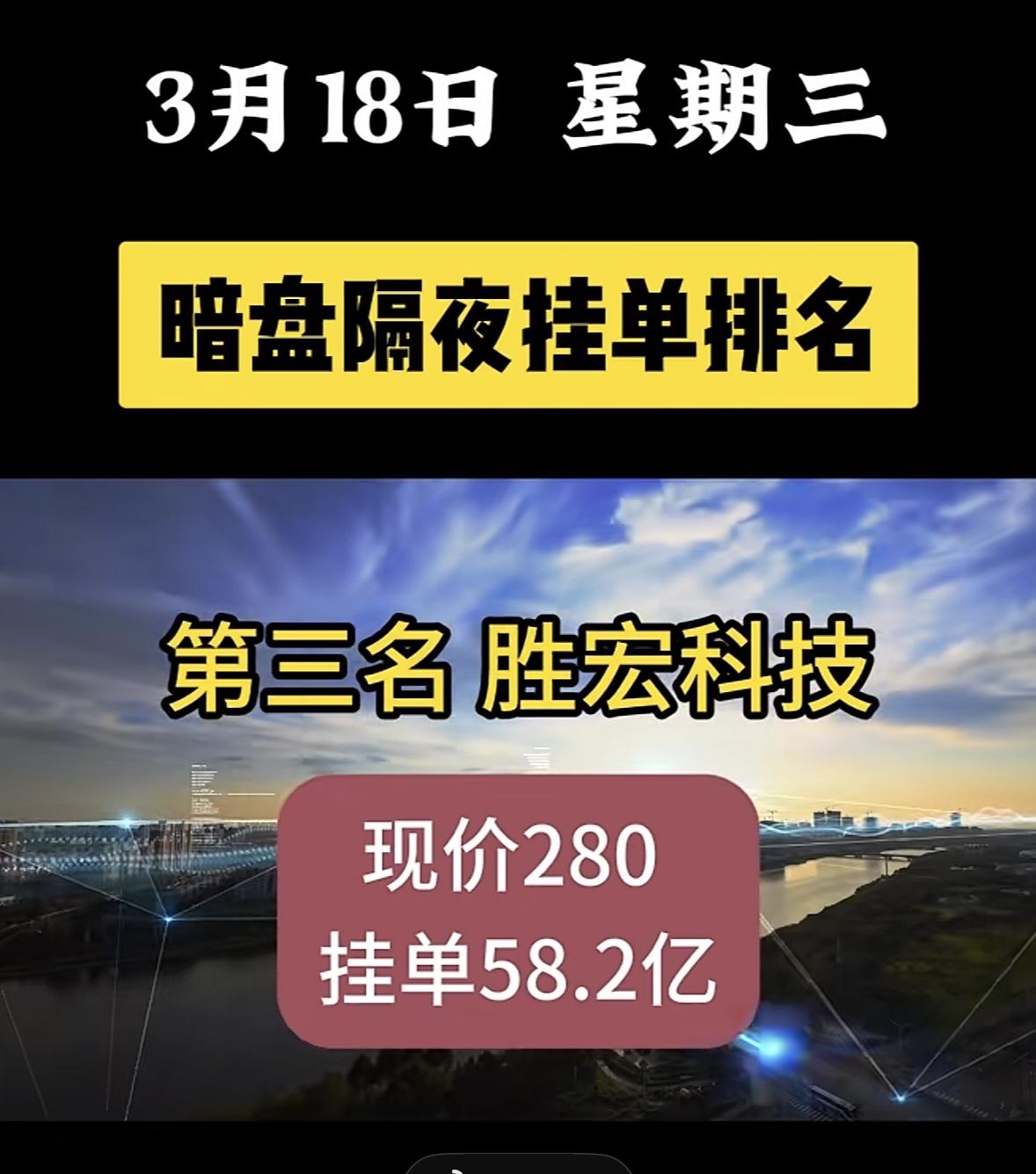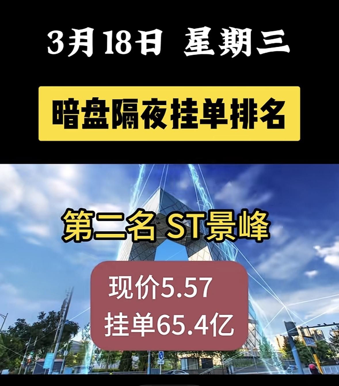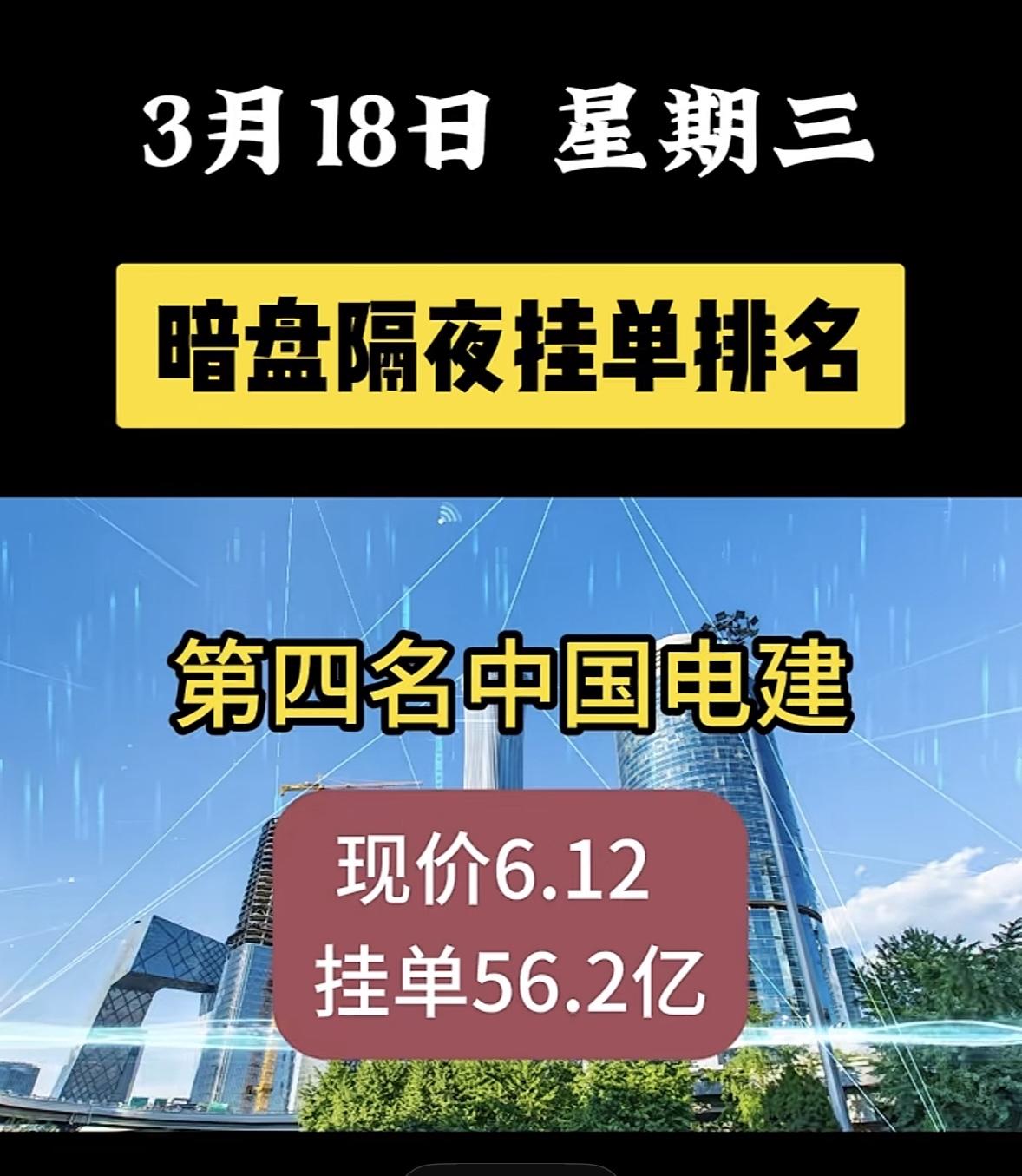 3月18日周三暗盘隔夜挂单排行榜揭晓 金风科技这暗盘隔夜挂单排名第八的消息一出