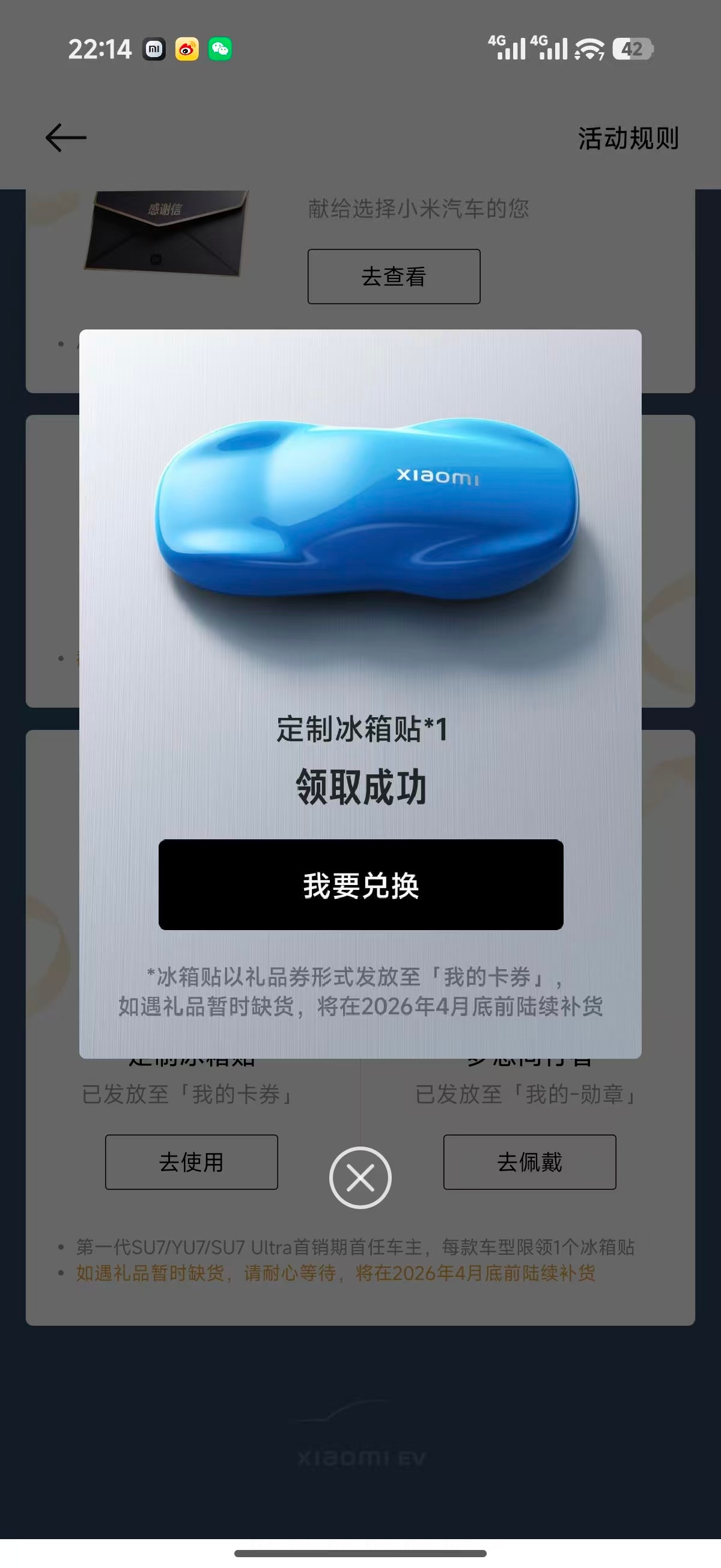 小米向第一代SU7/YU7/Ultra首销期首任车主赠送定制冰箱贴,限量15万份