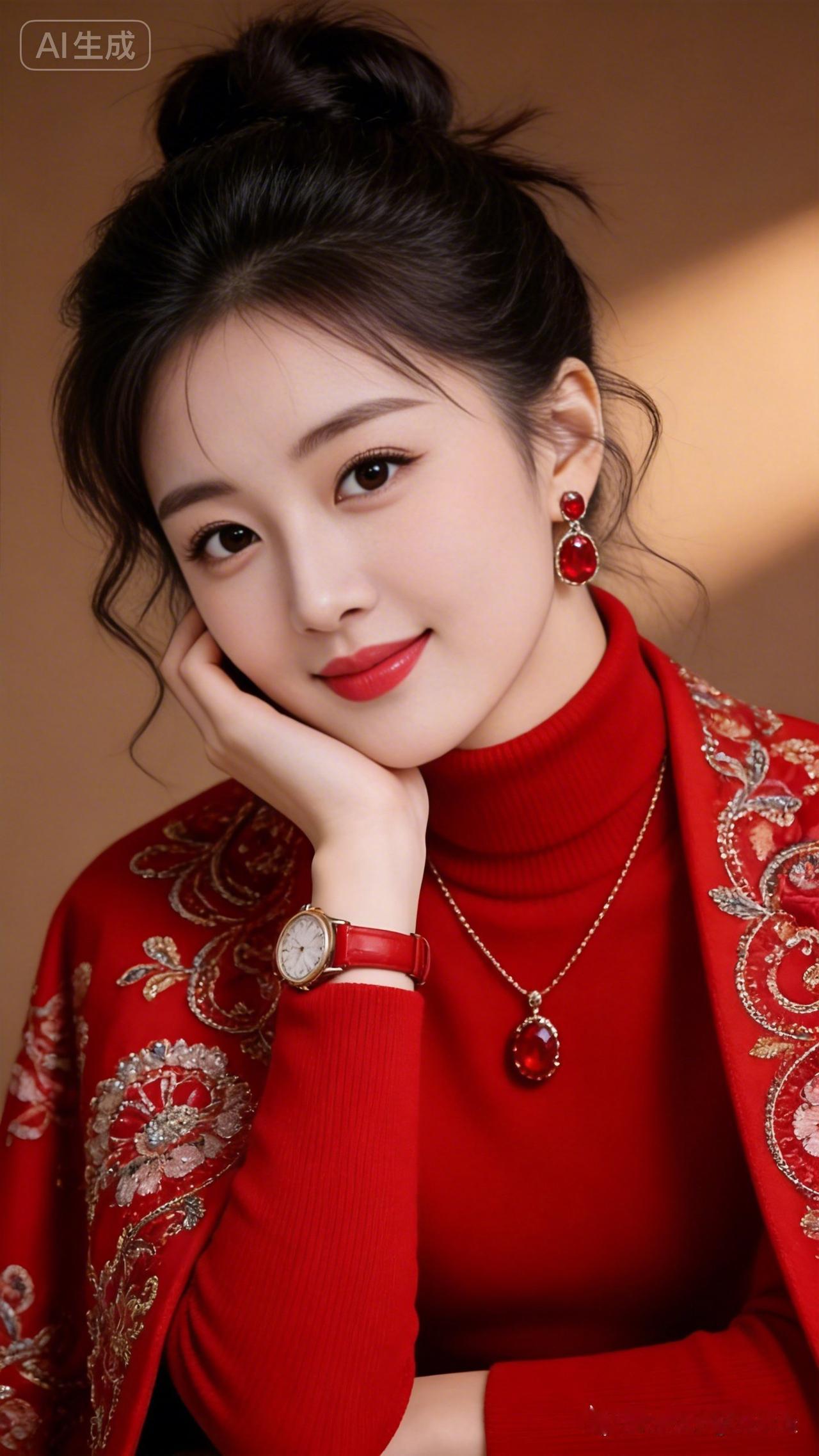 优雅红衣美人,复古珠宝闪耀,尽显东方韵味!