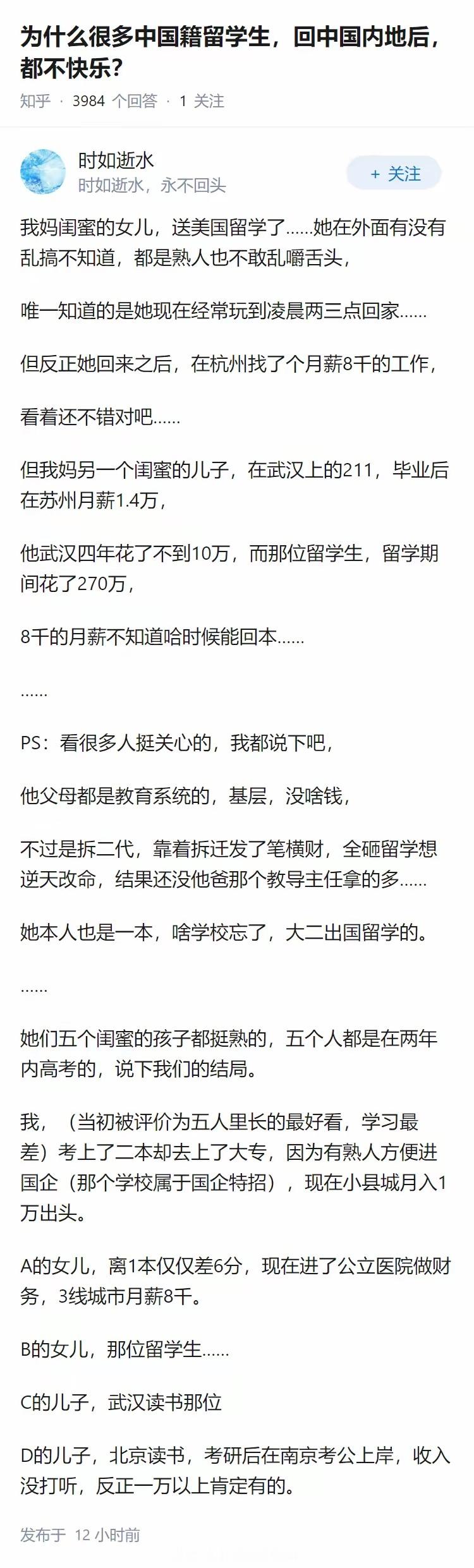 “为什么很多中国籍留学生,回中国内地后,都不快乐?”