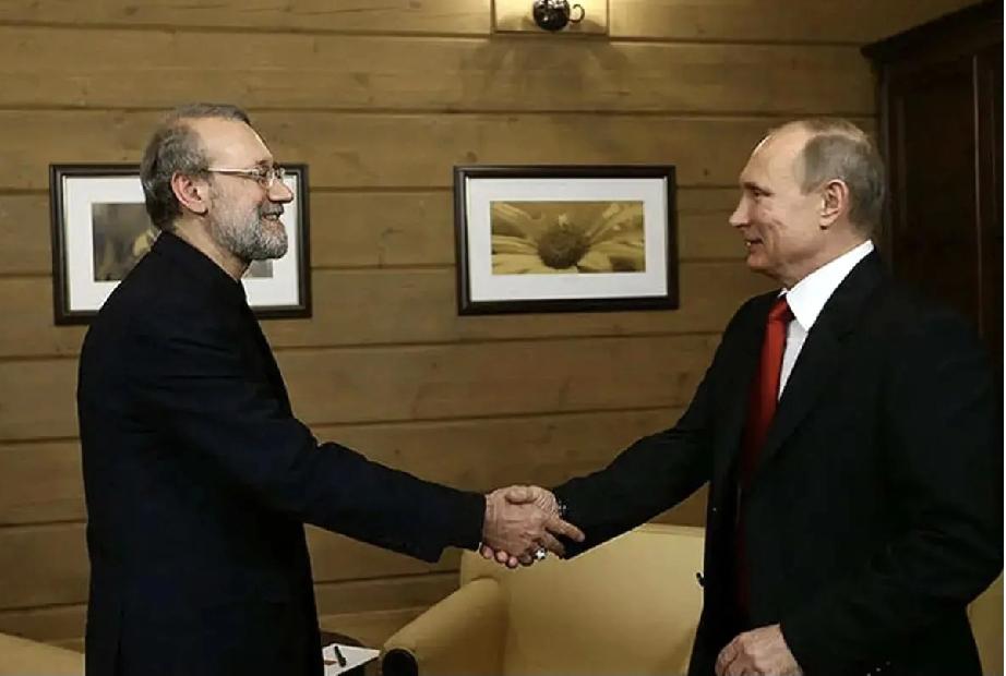 和普京握手的拉里贾尼,笑意盈盈; 和哈梅内伊聊天的拉里贾尼,表情带虔诚。 正在讲话的拉里贾尼,眼神很坚定。