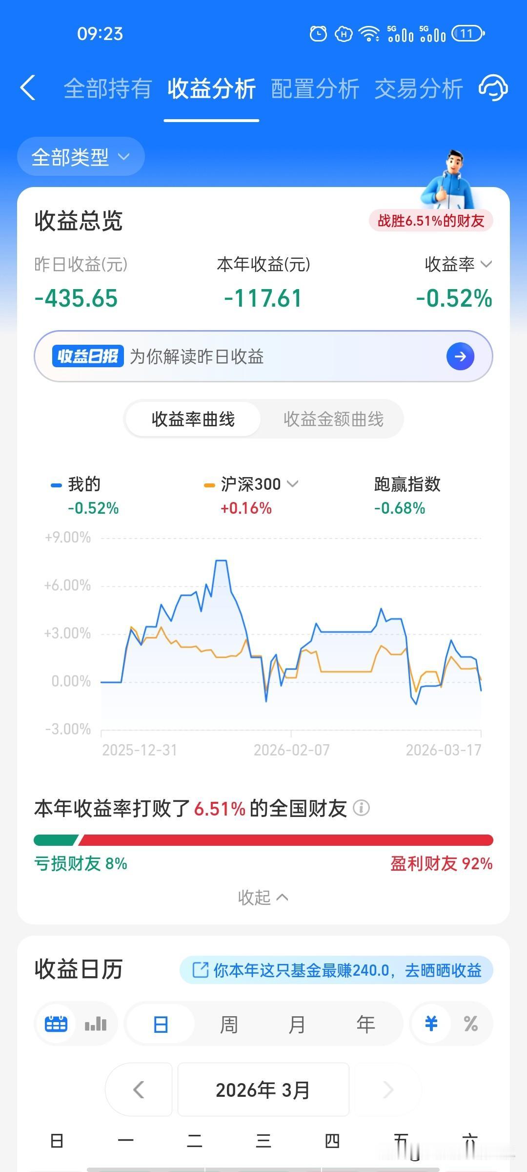 科技成长赛道还能买么?又给基金贡献了两天牛马费! 昨日收益出炉,又是绿油油的一天,军工以-2.23%领跌全场,新能源车以-2.14%紧随其后,机器人也不甘示弱的强势贡献了-1.75%,一通操作下来,直接把昨天收益干到了-435.65元,又是一两天的牛马白当了…… 不过我对于科技成长赛道还是有信心的,就拿新能源车来说,出口销量节节攀升,技术更新也是日新月异,机器人更是春晚上出尽了风头,市场前景还是光明的,你觉得呢?