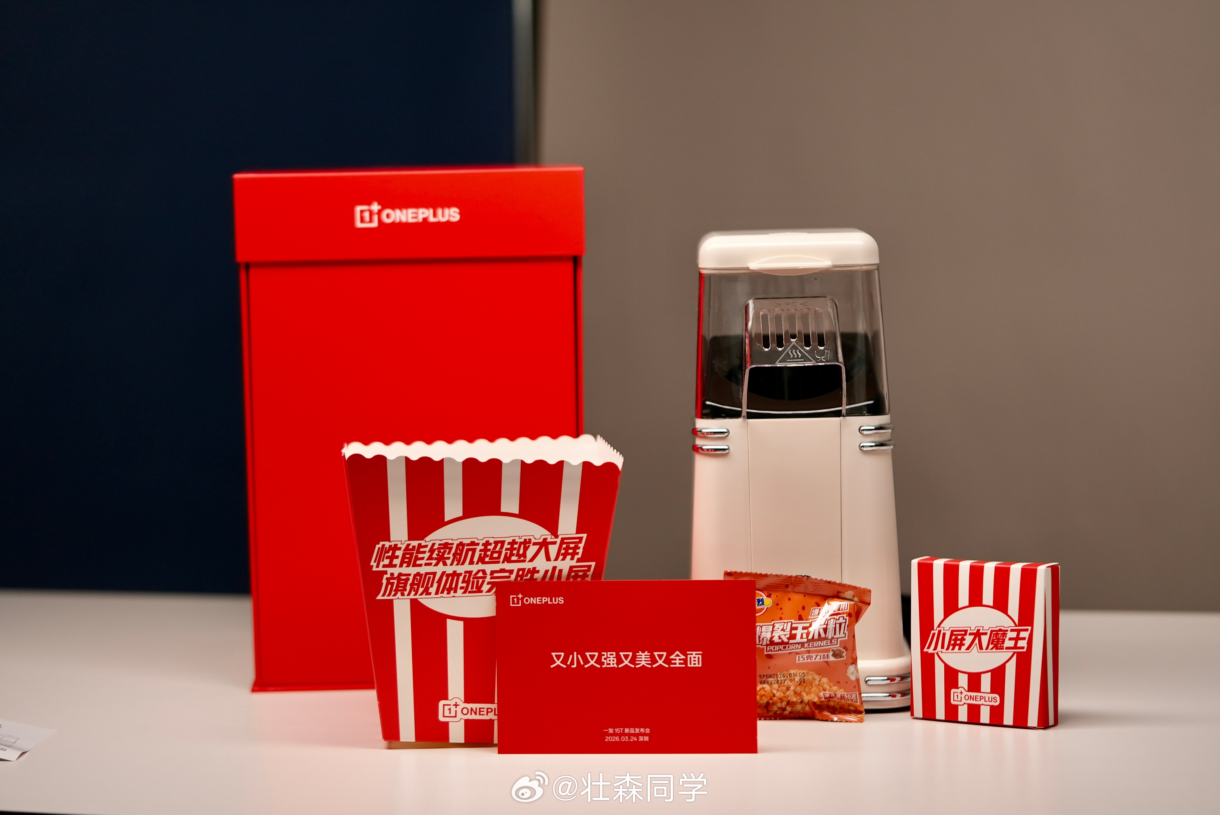 这次一加 15T的发布会邀请函真的有点意思——直接整了个「爆米花机」🍿。一小把玉米粒,瞬间爆出一大桶,这个隐喻我觉得很到位:小屏,也可以有大爆发。