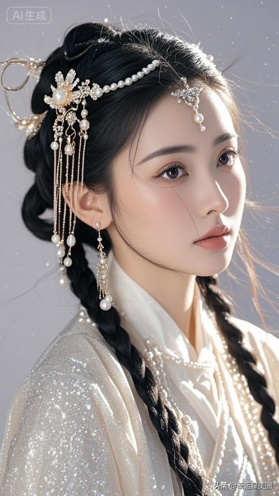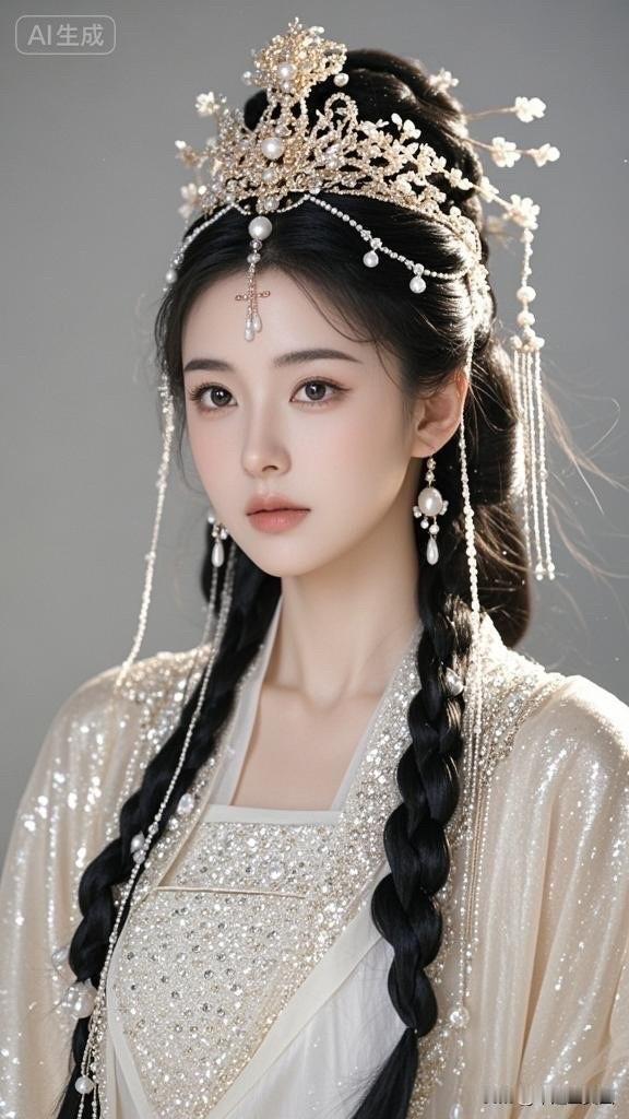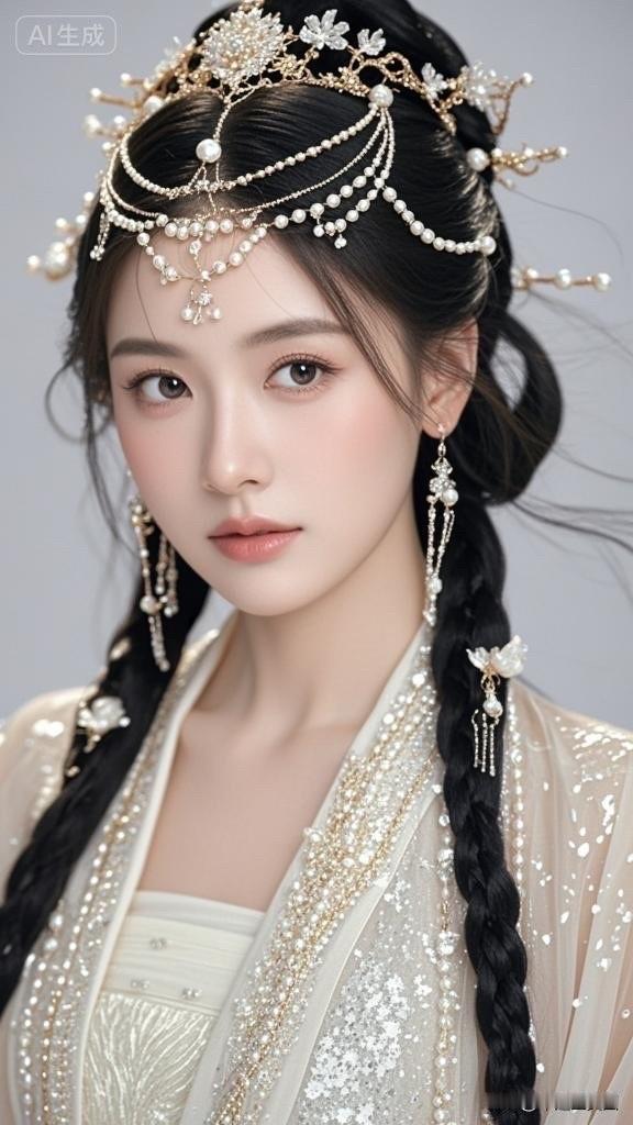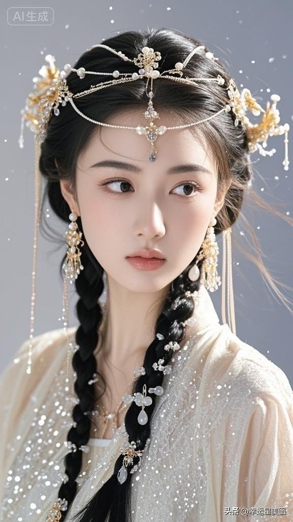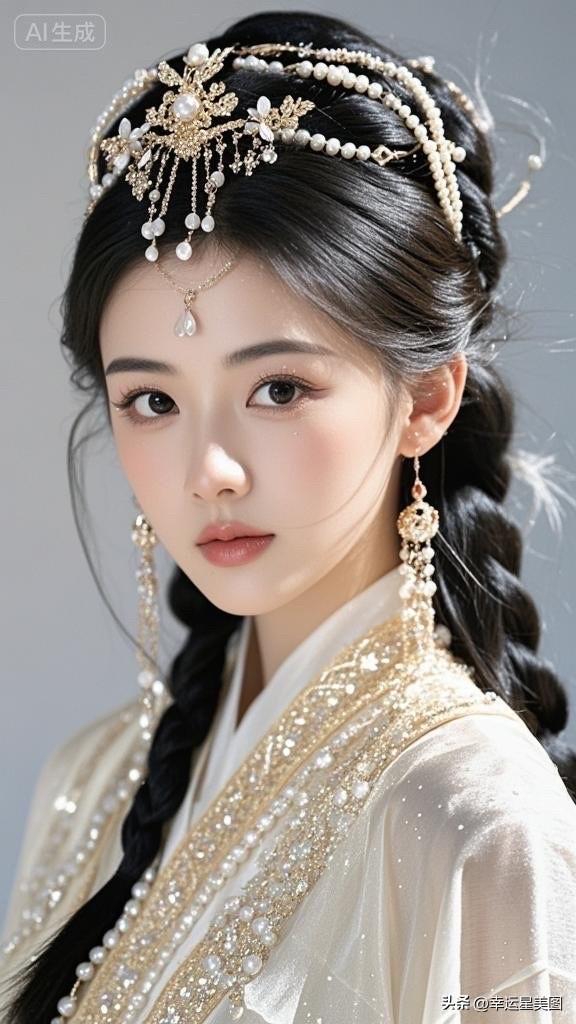 梦幻古风少女,头戴珠光宝气,宛如画中仙子。