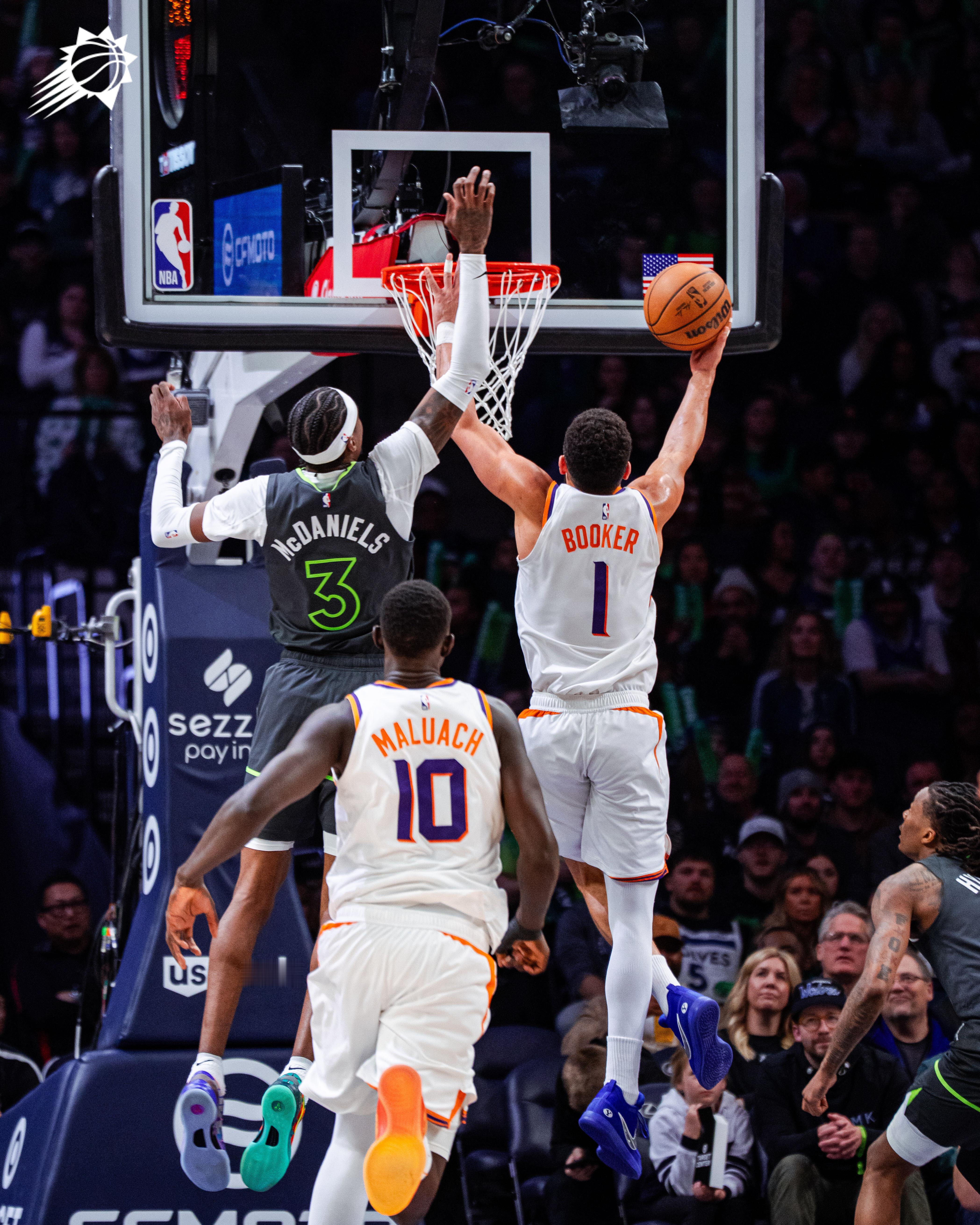 布克反击得分,目前拿到19分菲尼克斯太阳 |旭日东升 |太阳vs森林狼