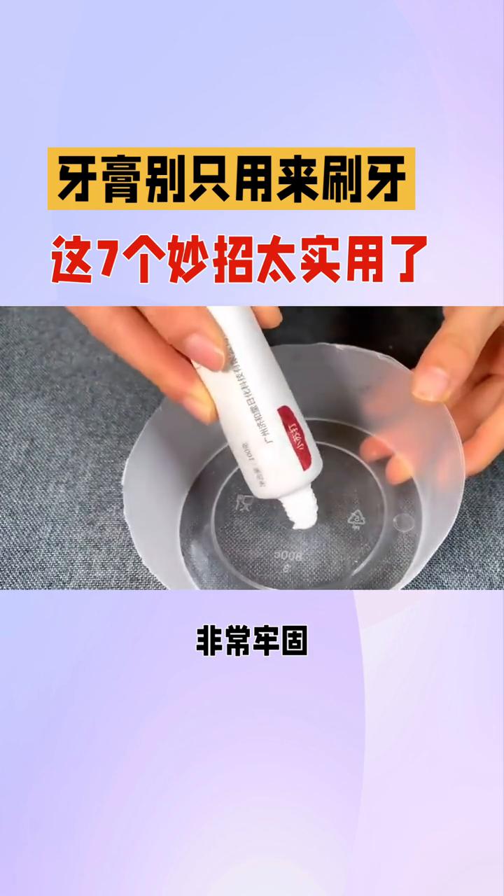 牙膏别只用来刷牙,这7个妙招太实用了。 牙膏的威力到底有多大?尤其最后一个惊掉你下巴。 ·第一,米饭加牙膏搅匀就是环保强力胶,非常牢固。 ·第二,牙膏加上洗衣液,网鞋的污渍全部都消灭。 ·第三,牙膏加上白酒,不锈钢的水锈立马都除掉。 ·第四,热啤酒加上牙膏,家里白鞋发黄的现象就不会再有。 ·第五,牙膏加上洗洁精,家里的玻璃一擦就亮晶晶。 ·第六,雪碧加牙膏喷在大白墙上,再也不怕孩子乱涂乱画。 ·第七,衣服发霉用牙膏、食盐、白醋浸泡后再洗,洗完就跟新的一样。 你觉得这个妙招实用吗?评论区打个分。度加AI生成。