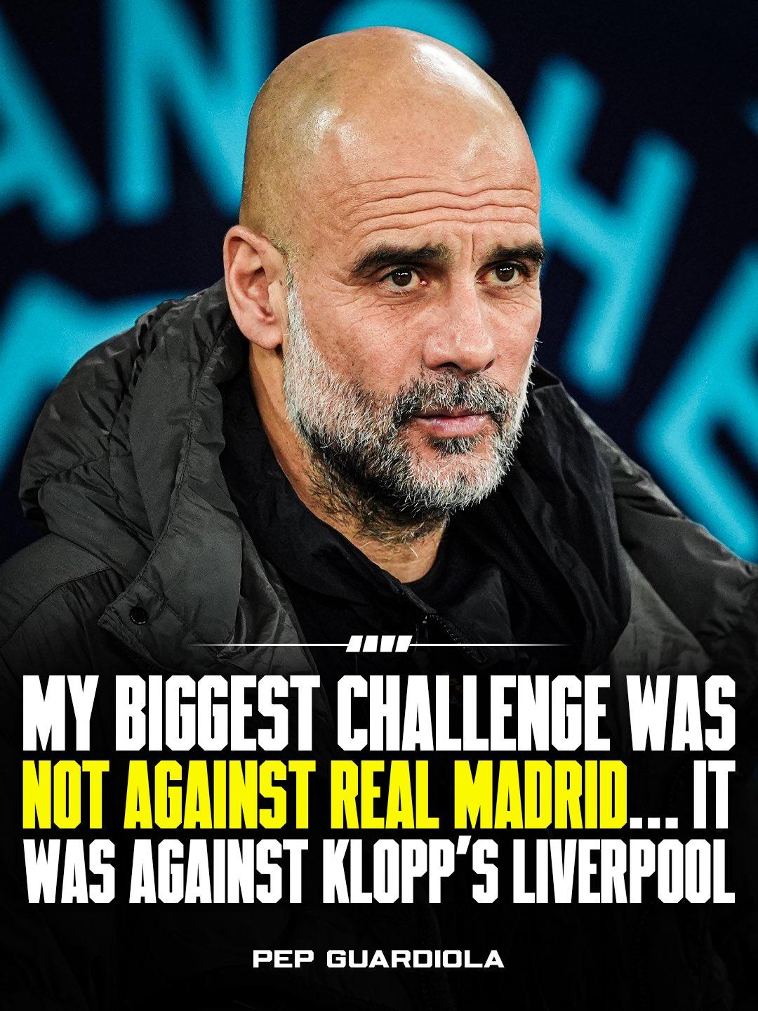 【瓜帅:我最大的挑战并非来自皇马】尽管在自己的曼城生涯里,瓜帅已第四次被皇马在欧冠淘汰,但瓜迪奥拉并不认为皇马是自己面临过的最大挑战👇: “皇马并非我生涯最大的挑战。我最大的挑战,是尤尔根·克洛普和他的利物浦。” “也许你们(记者)身在西班牙没有留意,你们根本无法想象,那些对阵利物浦的比赛是何等强度。那是一段极其宝贵的学习经历。”曼城