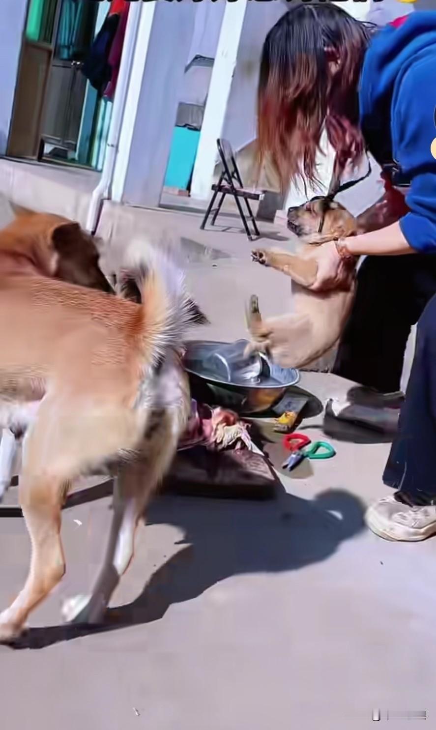 过年时,奶奶准备杀鸡。狗妈妈竟带头偷鸡,它的孩子也跟着过来。奶奶抓住其中一只狗,手拿菜刀,佯装要把它们一块儿杀了。狗妈妈见状,立刻吆喝着让孩子快跑。这招还真管用,直到奶奶忙完,它们都吓得不敢露面。狗妈妈和孩子 杀鸡真相