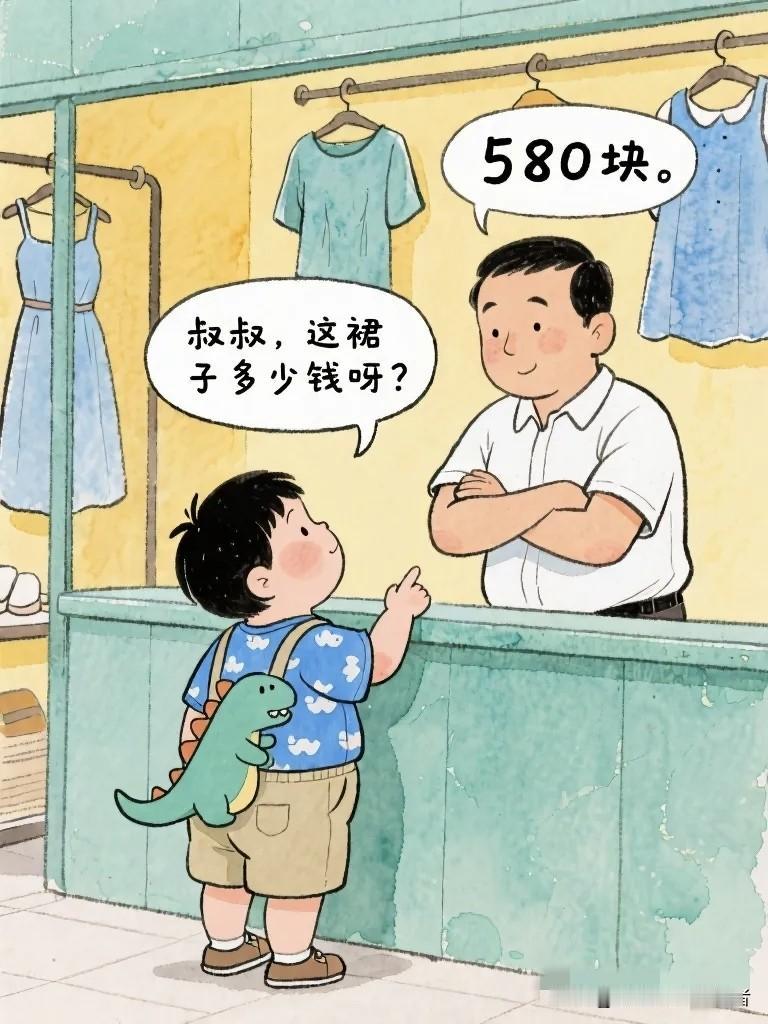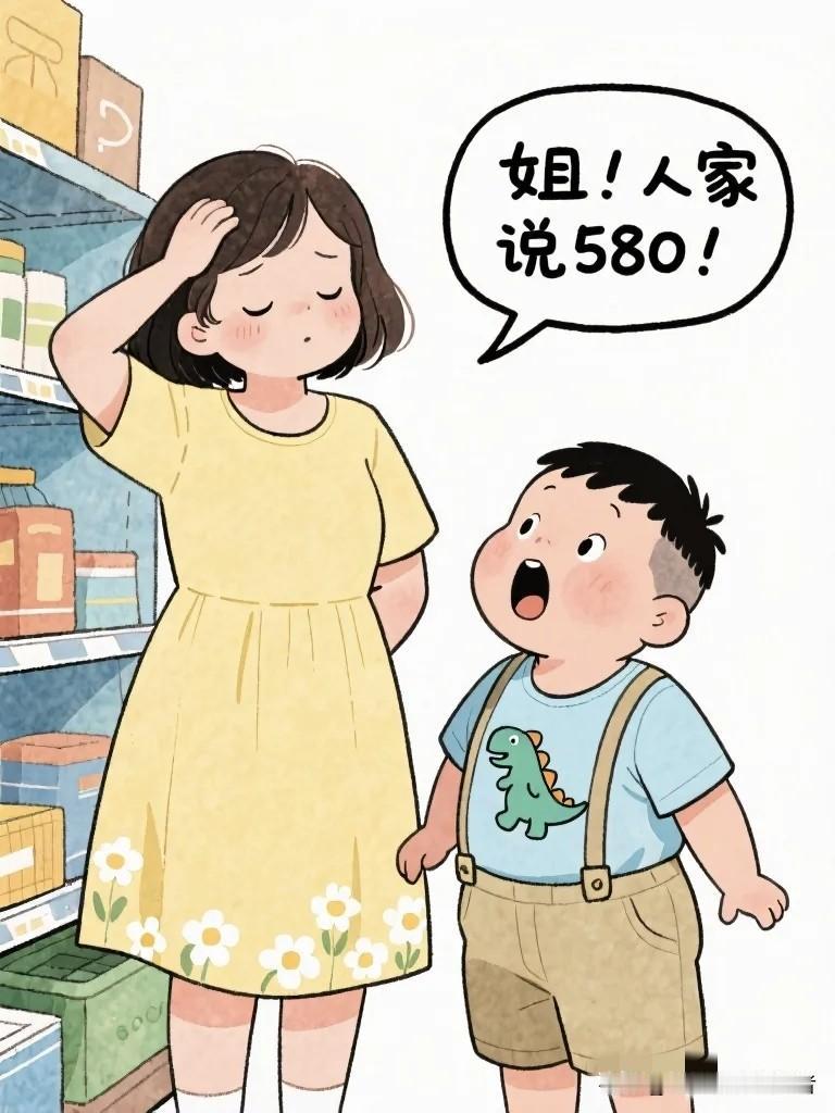 搞笑漫画:弟弟陪姐姐逛街看上裙子,姐姐示意弟弟去。弟弟问:“这裙子多少钱?”老板:“580。”弟弟喊:“姐,人家说580!”