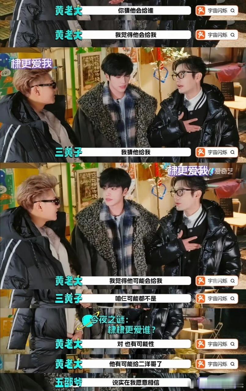 王鹤棣让三个男人为他大打出手宇宙闪烁请注意谁被王鹤棣的操作笑晕了!木瓜表心意环节他花式布局,把黄子韬、邵子恒、晓明哥都骗到一起,上演搞笑错付剧情,最后看视频信被打动,挨个安抚兄弟,暖心又有梗!