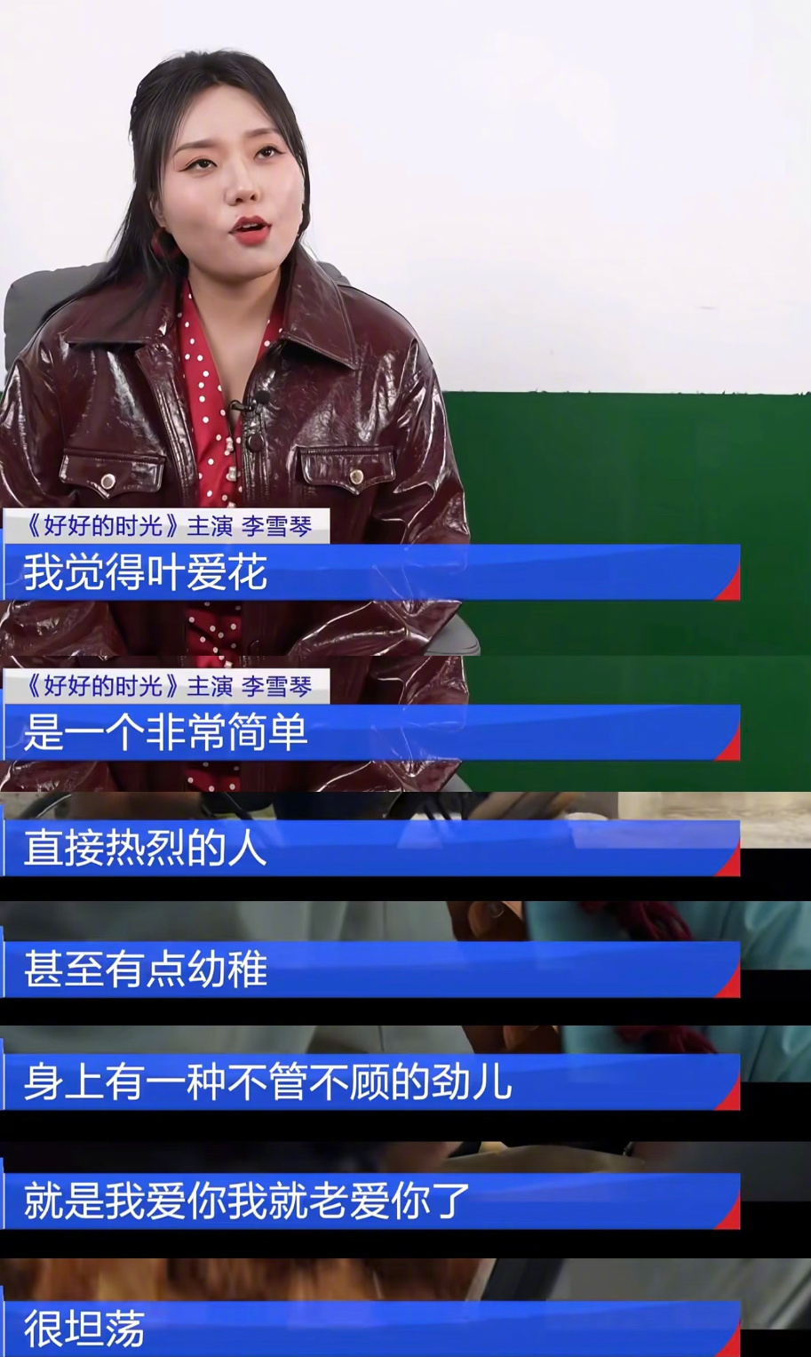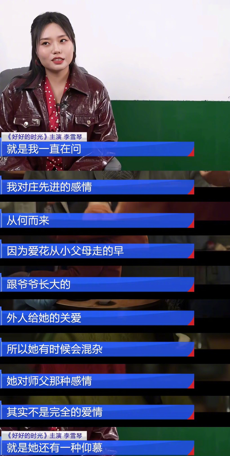 #李雪琴叶爱花直球式人生##李雪琴聊好好的时光和田雨对手戏# 热播剧《好好的时光》中, 把叶爱花演得如此鲜活!李雪琴说:“叶爱花身上有一种不管不顾的劲儿。爱得坦荡。”她把文学洞察力融入角色,用自己的生活阅历思考角色心境。当聊到和的对手戏时,表达了田雨老师的专业和沉稳,让两人的对手戏份更加出彩。(cr.梅子写作疗愈)