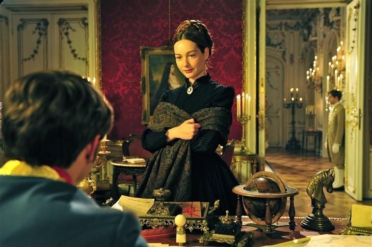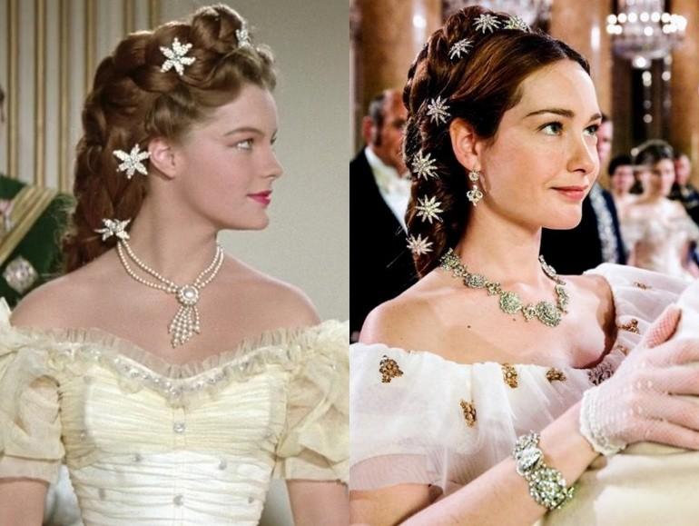 即使罗密施耐德的《茜茜公主》再深入人心,后来人也拍了好几个版本试图再现经典。 可惜,都扑街了啊! 特别扑的就不说它了,2009年意大利有一部迷你剧《茜茜公主》,一共两集共198分钟。 主演也算美女帅哥,但女主当年已经29岁,气质太成熟,要说演《简爱》女主,或是演个不得宠的王后是可以的,演十五六岁的茜茜公主,实在难为人。 罗密五官脸型并非完美,眼距宽脸型方,和杰奎琳一样,被称为“鲶鱼脸”。 可正是这份天然少女娇憨感,让她很有观众缘,加上弯弯的眉眼和嘴角,一笑起来跟孩子一样天真纯粹,怎能不惹人心动。 当年17岁的她身量未完全长开,瘦弱溜肩,又正暗合了“弱柳扶风”的传统审美。 当年流行的克里诺林裙上半身紧身下半身宽松,和她纤细单薄的肩膀相得益彰,衬得她青丽又不失优雅。 2009版的茜茜公主女主克里斯蒂安娜长相大气端庄,就失了天然纯真的气质,似乎已经是个成熟的王后样子。 而茜茜,刚入宫时就像一只刚被关进笼子的小翠鸟,无助慌张强撑体面,这一点,只有17岁的罗密能展现出来。 这一部也是从1853年茜茜和弗朗茨意外邂逅开始,拍到1967年茜茜加冕为匈牙利王后。 这部IMDb评分6.4,制作精良不算烂片,如果没有珠玉在前,可能还算个正经历史故事片,可惜罗密太难超越了。