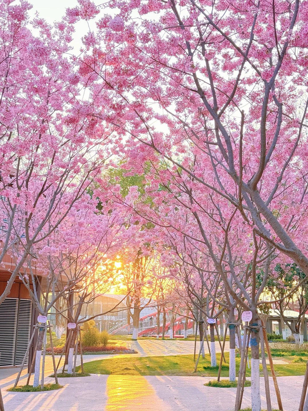 还好网友诚不欺我,不一定非得去天屿山看日落,这边的日落也很绝!重点是近期还有一片樱花园,开的很美!
