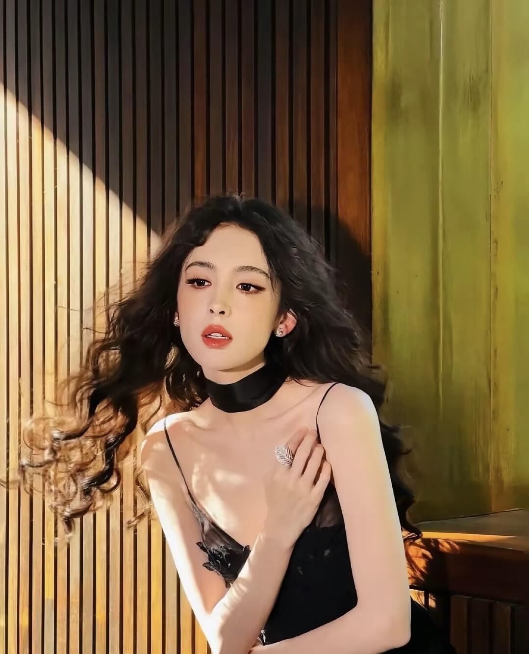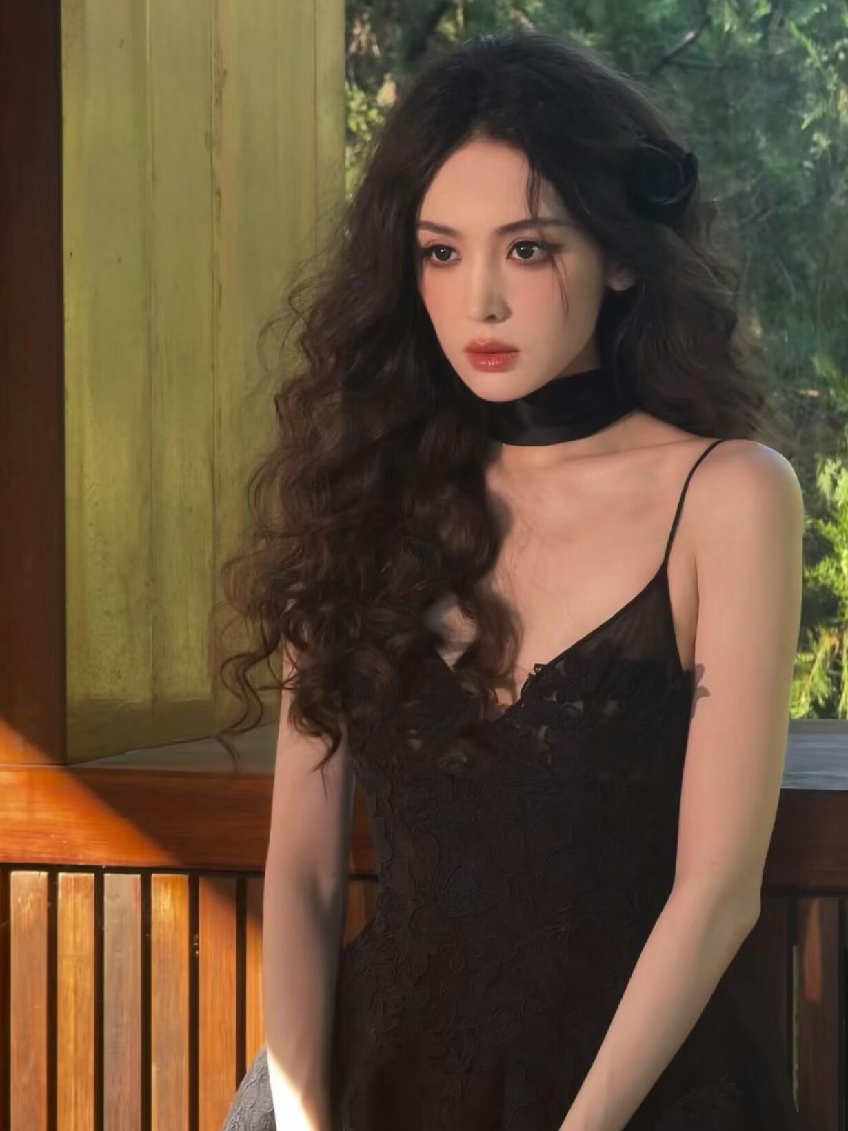 娜扎 卷发里藏着一朵黑玫瑰 像把夜晚折进鬓角 丝绒颈圈勒住半片呼吸 蕾丝裙裾,是风也不敢碰的秘密 阳光斜斜切过木栏 在锁骨处刻下浅金的纹 你抬眼时,睫毛扫过云影 把一整个夏天的蝉鸣 都揉进了沉默的眼神 风掀动发梢 指尖悬在半空,接住光的碎片 镜头在暗处凝视 而你望向更高处—— 那里有未被命名的自由 和黑裙下,轻轻跳动的星
