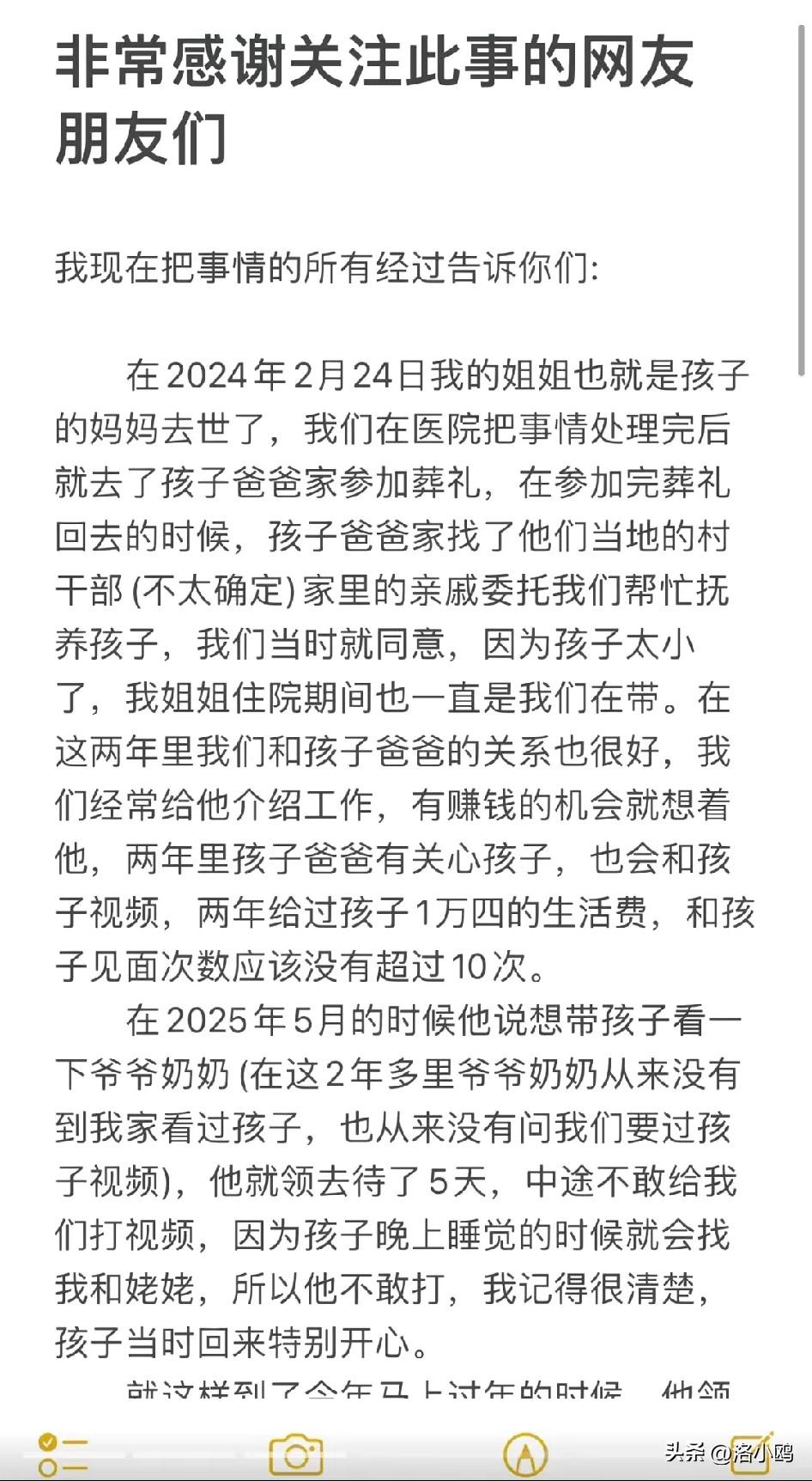 一觉醒来, 有孩子的和没孩子的都沉默了。 涵涵这事说到底还是老问题,门不当户不对。 妈妈自己选的老公,两眼一闭,给孩子留一个结结实实的原生家庭。 本来爸爸说孩子三岁了,再不领回来养,就不亲了,说的合情合理,但是后面小姨发声了,感觉有点猫腻。 涵涵在小姨家是嫡长女待遇,在爷爷奶奶家是糊口家庭,差距太大了,所以看起来差距很大。 在农村,其实很多孩子脏兮兮的,这个主要是取决于带养的人,会不会照顾孩子。 但是孩子一看到小姨就哭喊要姥姥,要走,我觉得还是呆的不开心。 现在孩子被要求回到监护人家庭,姥姥和小姨再爱,也都是外人。 可问题在于,当初为啥要委托姥姥家养呢,是不想要吗?那现在为啥又要了? 这算盘我感觉打的有点响。如果爸爸再婚了,涵涵大概率是跟爷爷奶奶在老家了。 所以,从孩子角度看,给小姨也不是不行啊,起码孩子一辈子生活无忧。何必为了一己之私,完全不顾孩子怎么想的。 三岁了,孩子有自己的见解了,希望最后能有个好的结果。