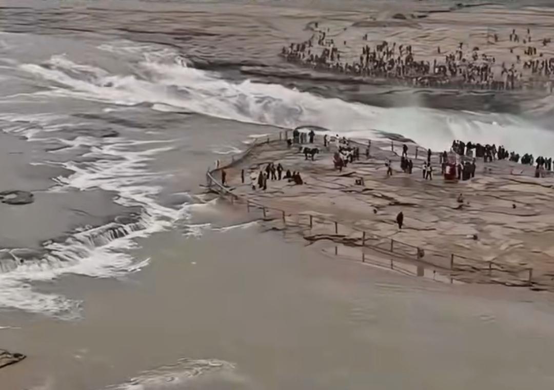 近日,一名游客在壶口瀑布景区外拍视频,对着黄河说:“妈,我们来看你了,门口要钱,