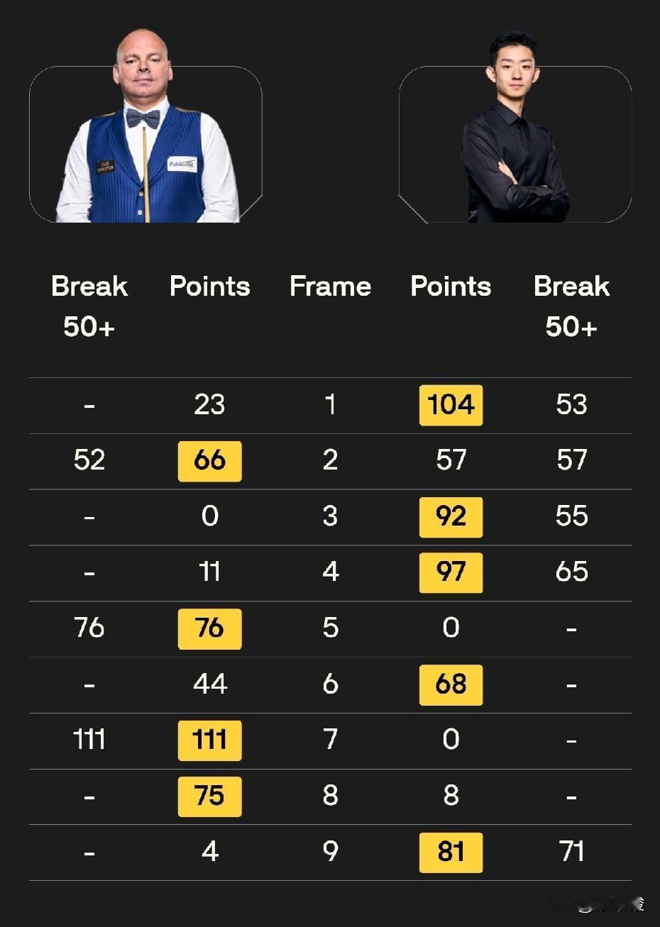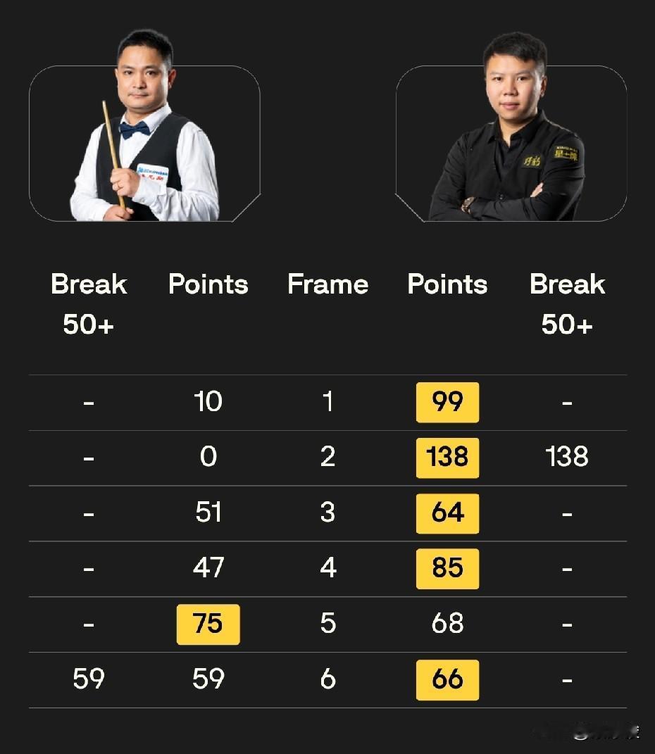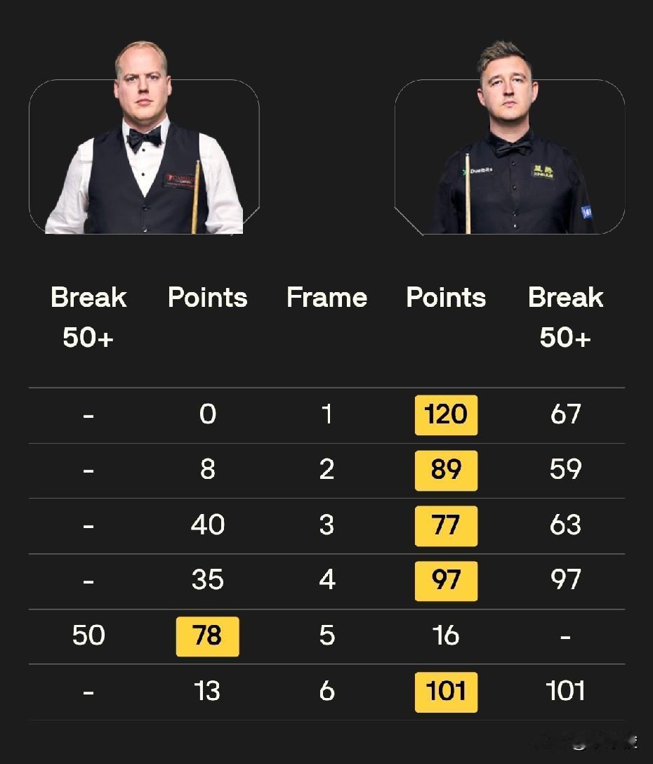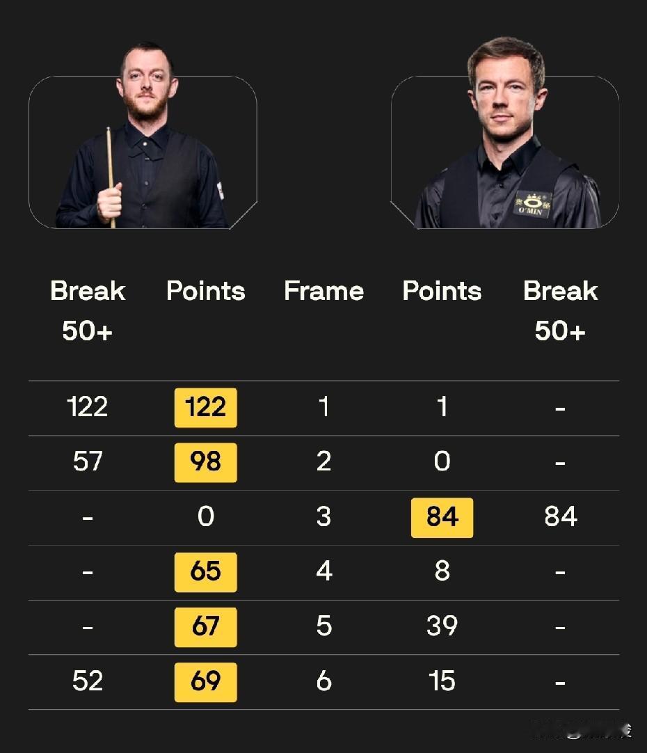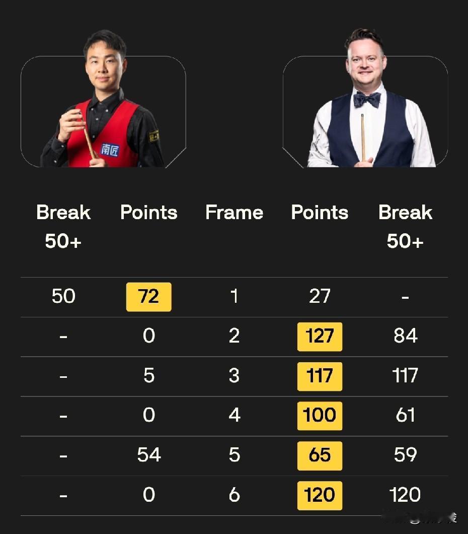 世界公开赛第三轮战报,周跃龙5-1大胜许医尘,刚刚,吴宜泽5-4绝杀宾汉姆,阻挡了二师兄追赶丁俊晖的步伐。徐思1-5负于墨菲,火箭5-0零封塞尔特。 今天下午32进16的第三轮比赛,节奏普遍比较快。最先结束的一场比赛,火箭奥沙利文5-0横扫塞尔特,轻松晋级16强。 周跃龙5-1大胜许医尘,赢得中国德比。前4局,周跃龙4-0领先,之后被许医尘75-68逆转扳回一局。第6局,周跃龙66-59逆转。 吴宜泽对宾汉姆的前4局3-1领先,之后被宾汉姆扳回一局。第6局,双方打得非常胶着,比分交替上升,最终还是吴宜泽获胜,4-2拿到赛点。第7局,宾汉姆打出单杆破百,再扳一局,总比分3-4。 第8局,宾汉姆神勇,长台上手拿到43分失误,可惜吴宜泽上手只拿到8分,因K球不佳转入防守。之后宾汉姆再次上手超分获胜,4-4将比赛拖入决胜局。 决胜局局面复杂,黑球和粉球不在点位,吴宜泽上手后打得小心翼翼,最终获胜,总比分5-4绝杀宾汉姆,晋级16强。 吴宜泽在晋级的同时,也扫除了丁俊晖前16后面的追兵,加上今天小司机同时出局,丁俊晖后面的追赶者又少了两个。 徐思今天状态不佳,1-5惨败给墨菲。整场比赛墨菲打出2杆破百、3杆50+,状态相当不错。 另外的比赛,艾伦5-1大胜小司机,这场比赛的节奏被小司机带快,小司机只在第三局打出单杆84分。 凯伦·威尔逊5-1大胜阿兰·泰勒。整场比赛,威尔逊有一杆破百、4杆50+。 布雷切尔今天1-5负于拉脱维亚选手齐津斯,稍显意外。不过如果联想到布雷切尔把主要精力放在铁人三项上,也就不足为奇了。另外,齐津斯这个赛季需要保级,因此也必须拼才行。 与昨天相比,斯坦·穆迪今天状态就差多了,估计精力都放在昨天对付希金斯身上了。今天对阵实力不是太强的瑞恩·戴,一度2-4落后。第7局,瑞恩·戴60-57险胜,最终瑞恩·戴5-2战胜小将穆迪。 今天19点30分,第三轮还有8场32进16的比赛,有4名中国球员出战,其中一场德比,具体对阵是: 肖国栋vs张安达 傅家俊vs奥唐纳 赵心童vs克雷吉 其他5场比赛是: 加里·威尔逊vs伯恩斯 塔猜亚vs霍尔特 罗比·威廉姆斯vs威尔斯 马克·威廉姆斯vs瓦菲 特鲁姆普vs杰克逊·佩奇。 中国球员,加油!