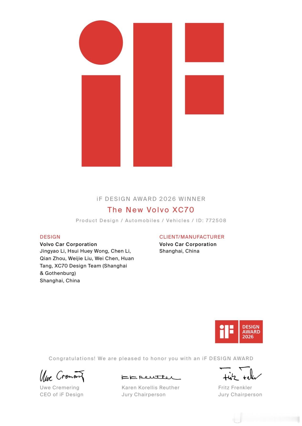 沃尔沃XC70安全超混旗舰美学、人本、科技的深度融合兼具审美价值与实用功能的豪华座驾沃尔沃XC70获两项iF设计大奖