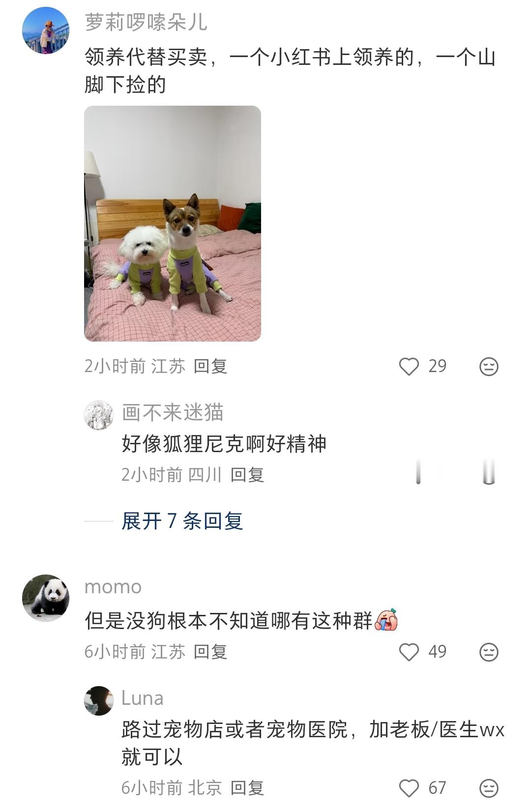 如果想养狗养猫,感觉真的很好捡。或者加一些同城的宠物群,有很多弃养的。领养代替购