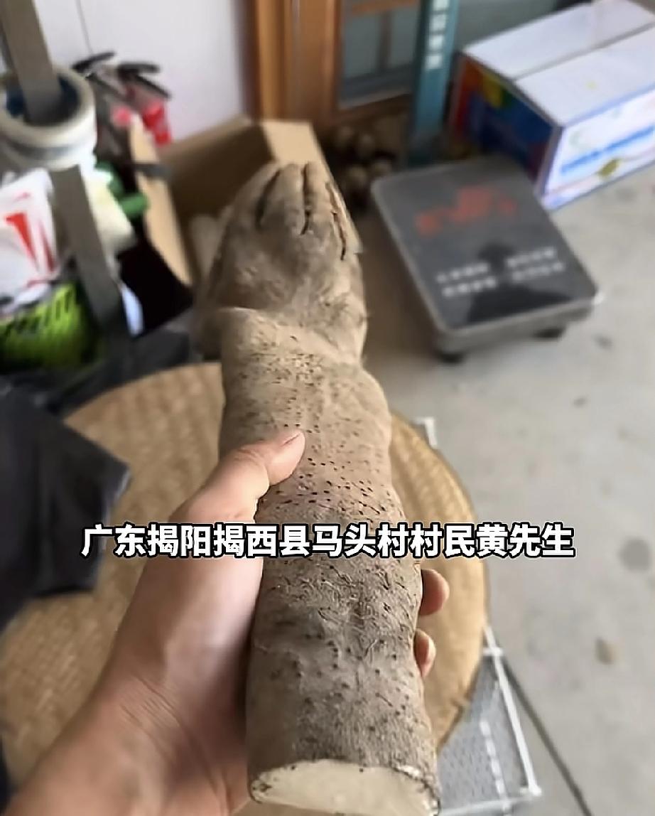 太神奇了,山药竟长得和人手一模一样,还有手指甲! 今日,广东揭阳揭西县一村民黄先生,在自家菜地里,挖出一根酷似人手的山药。 黄先生讲,这根山药属于自然形成,刚挖出的时候“指甲”是粉色的,挖出一段时间后变成了黑色,刚挖出时黄先生的妻子还吓了一大跳。 黄先生说,种地几十年这是第一次遇到这种情况,属实稀奇! 消息一出,有人想出8000元收购,被黄先生婉拒。 黄先生想把这根异形山药制作成标本留存,因为这根天然形成的山药,也是大自然的馈赠!