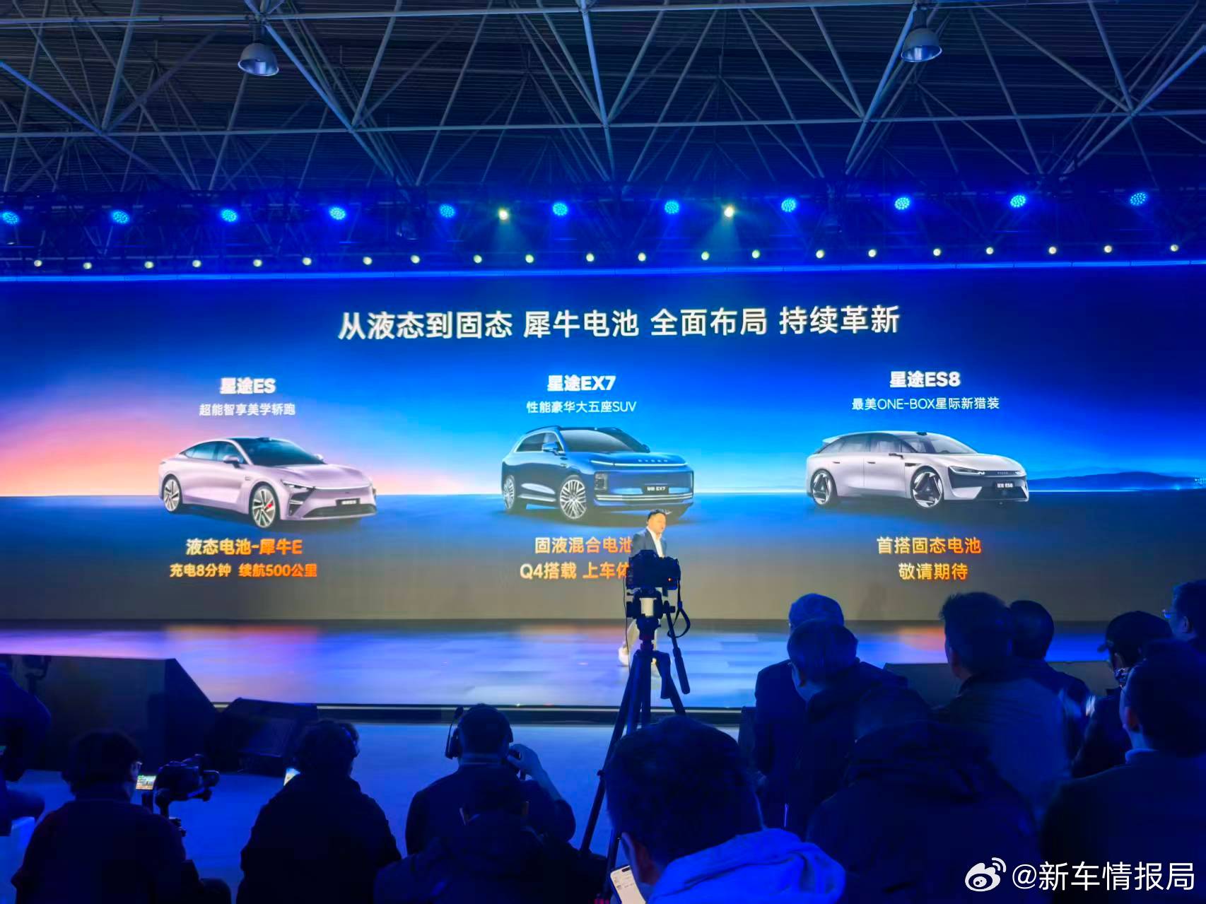 奇瑞固态电池一年内上车实验新车情报局刚刚,奇瑞汽车执行副总裁李学用表示,在产品方面,星途ES将搭载犀牛E液态电池,充电8分钟补能500公里;搭载固液混合电池的星途EX7将在今年第四季度上市;星途ES8将首次搭载固态电池,并在一年之内做上车试验。