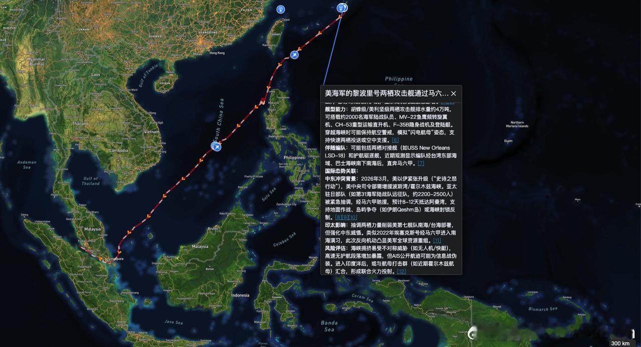 警报拉响!2500名美军陆战队进印度洋,伊朗的“复仇窗口”已打开? 觅熵卫星最新捕捉到:美军两栖攻击舰“的黎波里”号正穿越马六甲,即将进入印度洋。甲板上,搭载的是近2500名海军陆战队员。 德纳号的账还没清算,美军的“拳头”已经高调抵近家门。 摆在伊朗面前的是两道选择题: 是硬碰硬,在海上截杀这艘准航母,为德纳号雪耻? 还是沉住气,放他们进来,在自家地盘上演“瓮中捉鳖”? 硬打,伊朗确实有能力让美军“疼”——找准破绽,一击命中不是没可能。 但想彻底击沉它,就得突破航母战斗群的多层防御网,代价可能是难以承受的全面战争。 所以,真正的杀招应该是:把这两千多人放进来,让他们陷入人民战争的汪洋大海,让补给线变成死亡线—— 到那时,决定胜负的就不是导弹多先进,而是谁更不怕牺牲,谁更能承受消耗。 这2500人,是“拳头”还是“诱饵”? 老铁们,你们怎么看? Source: X
