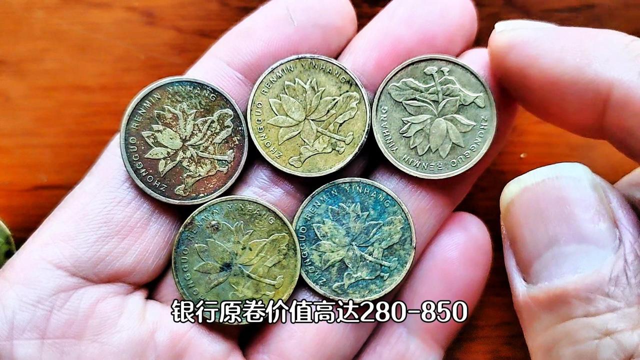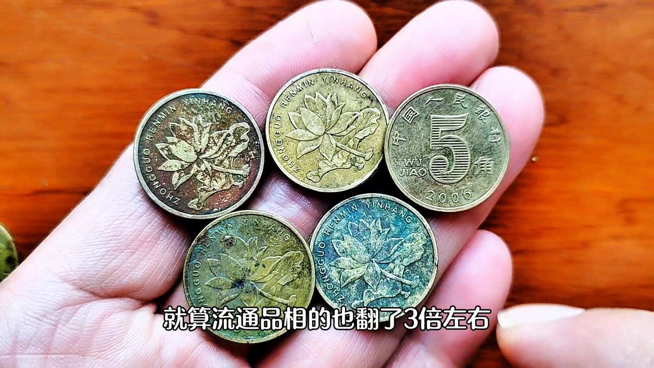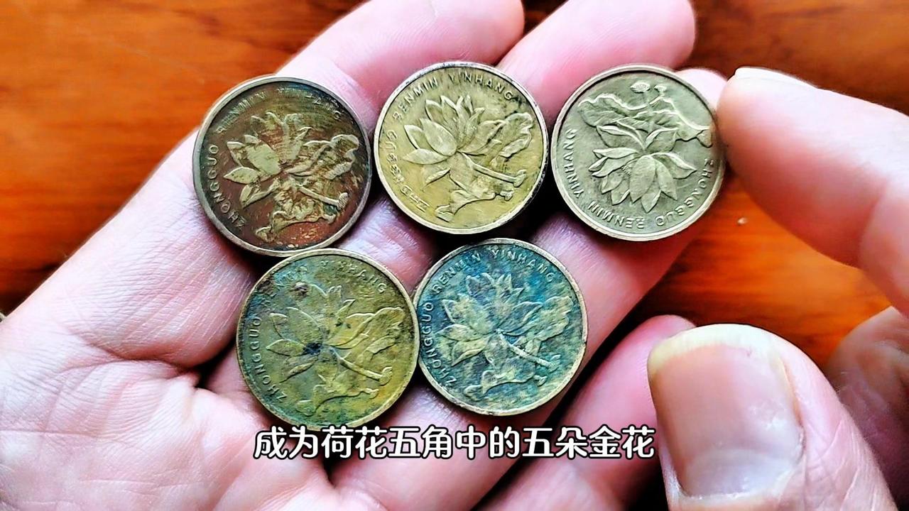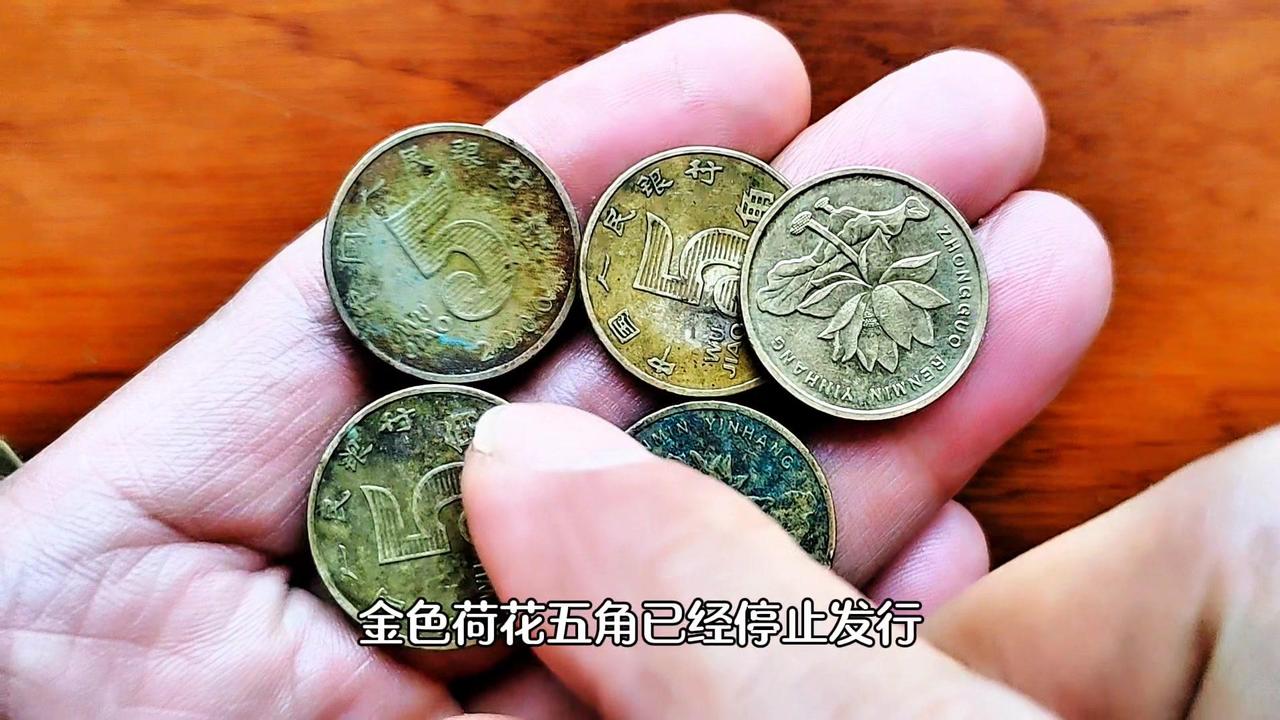 💰荷花5角硬币发行两个版本: 1️⃣2002年至2018年发行的钢芯不同的金色荷花5角。 2️⃣2019年升级改版不锈钢材质的银白色荷花5角。 💰两个版本中金色荷花5角已经停止发行,金色代表财富收获,荷花寓意和谐美满、百年好合,因此金色荷花5角具有一定的收藏价值。 💰特别是2002年、2003年、2005年、2006年、2008年这五个年份,发行量稀少,成为荷花5角中的五朵金花,银行圆券价值高达280-850元,收藏价值和潜力将会与日俱增,就算流通品相的也翻了3倍左右。大家遇到了千万别当五角钱花掉了。 💰新版荷花5角记住2019年开门币就可以了。 2011年金色荷花5角: 因为它独特的魅力,致使它价值不菲,一枚暴富。 1️⃣包浆币:正面中字右边的竖是断开的,藏家称之为开口中。 2️⃣天眼币:铭和寅上面出现两个凸起的圆点,就像一双眼睛。 💰这种集包浆、开口中和天眼于一体的金色荷花5角可谓是一币难求,物以稀为贵,错版为王,一枚暴富。