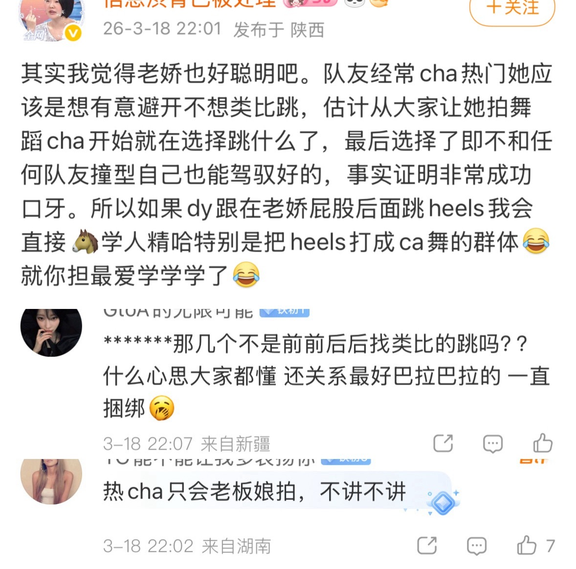 有没有人能告诉我这个【该作品不支持转发】是什么意思呀 糊就糊还说“限流” 回旋镖虽迟但到哈 自担擦跳成擦舞偷换概念到整个heels上来了 擦来一个百万高兴坏了在这虚假繁荣啥呢3f还把发🫘少不想营业归结于“不跟风”“找自己风格”阿萨不想宠粉不想拍直说呗找什么借口给自担找补呢 这时候怎么不说之前拍刀马cha结果0人问津 跟风韩网手势舞还有学队友视频风格的事情啦 这些可是数都数不过来的哈😆