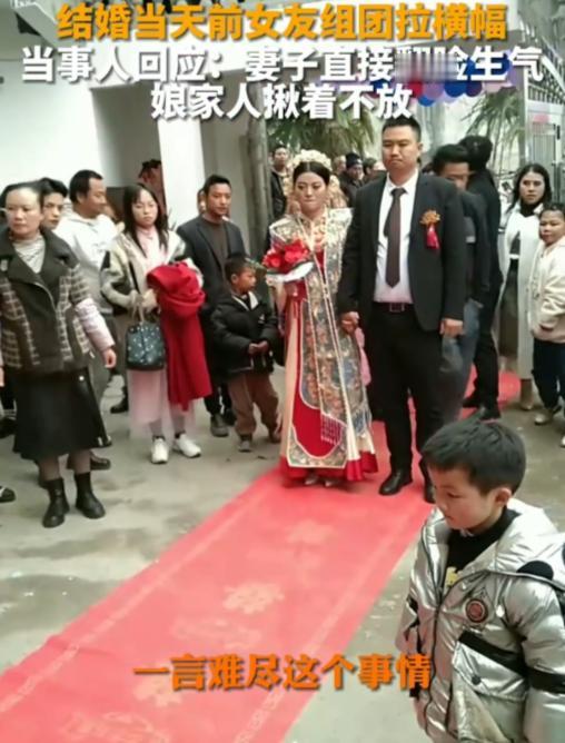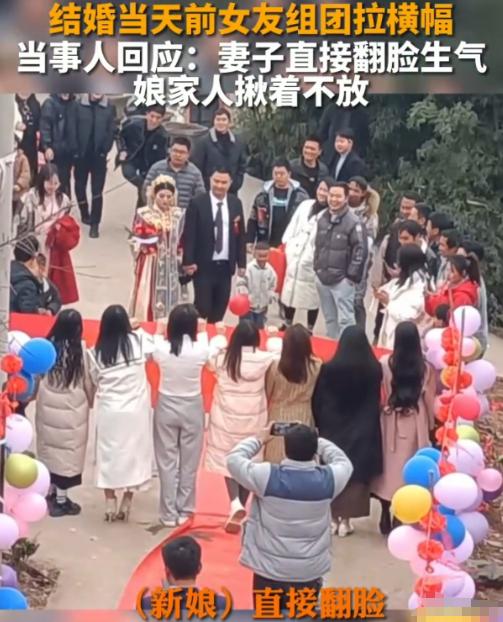 “男子结婚当天,前女友团拉横幅,只是为了报复他,但新娘一家丢尽脸面” 这些前女友究竟是有多恨新郎,互不相识的一帮女人竟然全都聚在一起,就是单纯的为了把新郎的婚礼搞废。 婚礼现场本该喜气洋洋,可一场突如其来的闹剧,却让所有的欢喜都变成了尴尬与难堪。酒店门口,几名打扮靓丽的女子并肩站着,手里扯着几条醒目的横幅,字里行间满是怨气,来往的宾客纷纷驻足围观、拍照,议论声此起彼伏。 而一旁的新娘一家,脸色惨白,低着头,恨不得找个地缝钻进去,好好的一场婚礼,彻底被这场突如其来的报复搅得一团糟。 接亲队伍顺利接到新娘,一路欢声笑语,抵达举办婚礼的酒店。可就在新人准备携手走进酒店大门,接受宾客祝福的时候, 几名女子突然从旁边的角落里走了出来,快速扯开手里的横幅,整齐地站在酒店门口的显眼位置,瞬间吸引了所有人的目光。 这些女子年纪相仿,打扮时髦,彼此之间看起来并不熟悉,甚至没有过多的交流,显然是互不相识的一群人。 可她们的目标却出奇的一致,都是冲着新郎来的——她们都是新郎的前女友,此次聚集在一起,没有别的目的,单纯就是为了报复新郎,把他的婚礼搞废,让他在所有人面前出丑。 横幅上的文字尖锐又刺眼,字字句句都透着怨气,把新郎过往的一些私事公之于众,刻意放大他的缺点,用尽刻薄的话语,发泄着心中的不满。 来往的宾客们见状,纷纷停下脚步,拿出手机拍照、录像,一边拍一边小声议论,眼神里满是好奇和看热闹的意味,原本喜庆的婚礼现场,瞬间变成了众人围观的“闹剧现场”。 新郎看到这一幕,瞬间懵了,脸上的笑容僵住,脸色一阵青一阵白,手足无措地站在原地,既尴尬又愤怒,想要上前阻止,却被几名前女友拦住,她们死死扯着横幅,不肯松手,就是要让所有人都看到,就是要让他颜面扫地。 一旁的新娘,穿着洁白的婚纱,脸上的喜悦早已消失得无影无踪,泪水在眼眶里打转,却强忍着没有掉下来。 她怎么也没想到,自己期盼已久的婚礼,会出现这样的意外,更没想到,新郎竟然有这么多前女友,还被她们联合起来报复,这份突如其来的尴尬,让她浑身不自在。 新娘的父母,脸色更是难看至极,低着头,不敢直视周围宾客的目光,双手紧紧攥着衣角,浑身都在发抖。 他们原本以为,女儿嫁了个好人家,能风风光光地出嫁,可没想到,婚礼当天竟遭遇这样的羞辱,不仅女儿受了委屈,整个家族都丢尽了脸面,连带着前来道贺的亲戚,也跟着抬不起头。 新郎看着眼前的混乱场面,看着新娘委屈的模样,看着岳父母难堪的神情,心里又气又急,却又无计可施。 他知道,这些前女友之所以会联合起来报复他,大概率是因为过往的感情纠葛,可他没想到,她们会如此极端,选择在他结婚当天,用这样的方式,毁了他的婚礼,也毁了他和新娘的好心情。 僵持了半个多小时,在亲友和酒店工作人员的反复劝说下,几名前女友才不情不愿地收起了横幅,没有再多做纠缠,转身匆匆离开了现场。 可经此一闹,婚礼的喜庆氛围早已荡然无存,宾客们的热情也被浇灭,现场只剩下尴尬和难堪。 新郎强压着心中的怒火和尴尬,陪着笑脸,勉强完成了后续的婚礼流程,可全程都提不起精神,新娘也一直闷闷不乐,脸上没有丝毫笑容。 原本应该充满幸福和喜悦的婚礼,因为这场突如其来的报复,变得面目全非,也成了所有人心中难以抹去的尴尬回忆。 对此,你们有什么看法,欢迎评论留言~