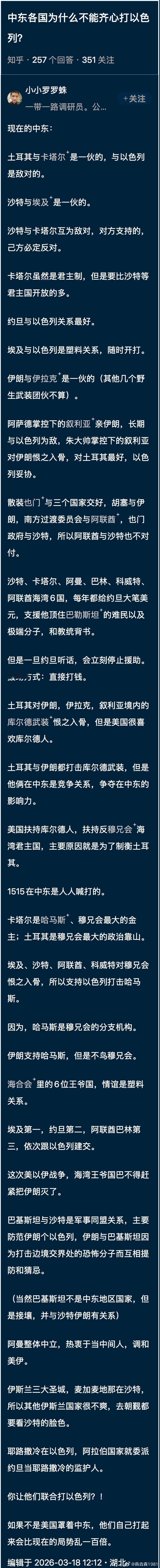 中东战争彻底“黑化”!时至3月18日,美国、以色列、伊朗三国全部摊牌:-